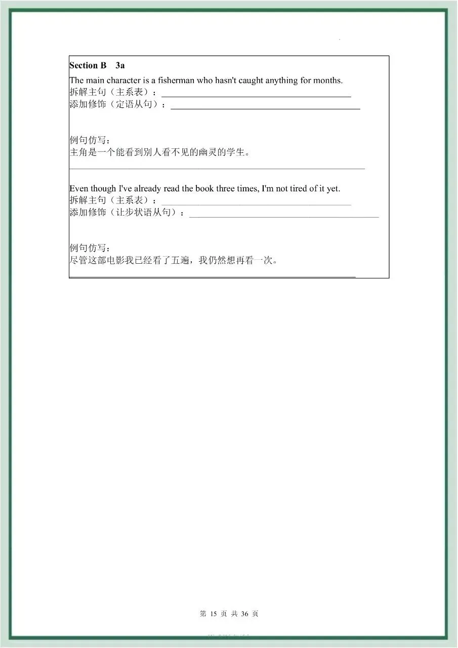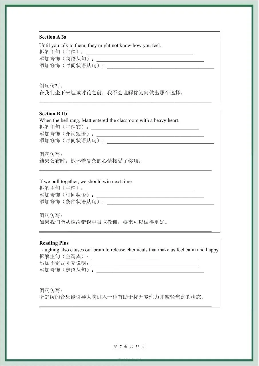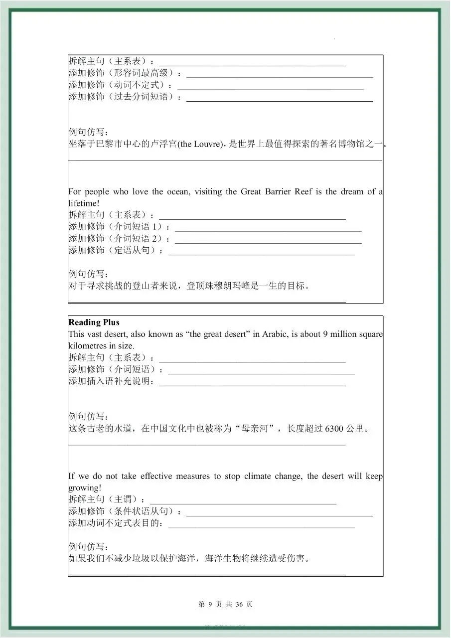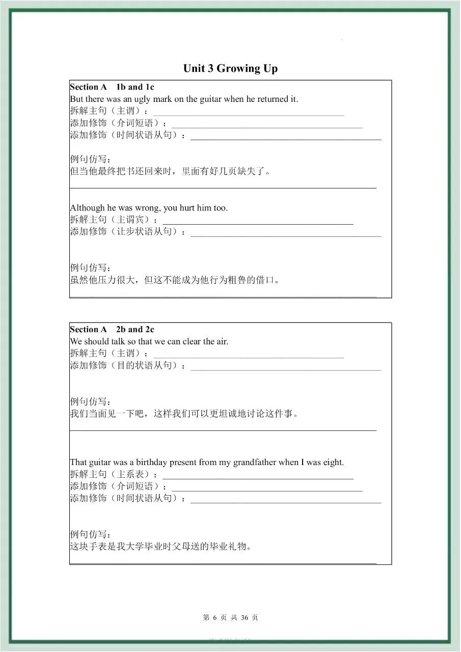 很多同学英语写作丢分,不是单词不会,而是句式不会用、文章不会搭。这份按最新教材整理的句子拆解与仿写,把八下核心句型拆得清清楚楚,结构一看就懂,换词就能仿写,不用死记硬背整篇范文。