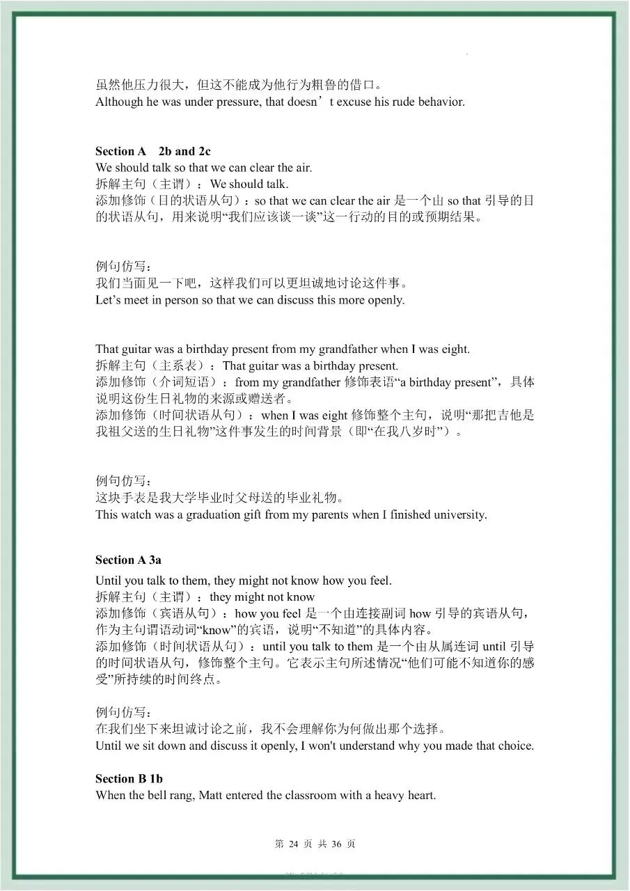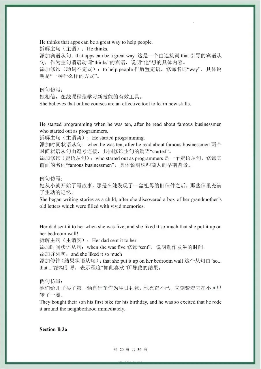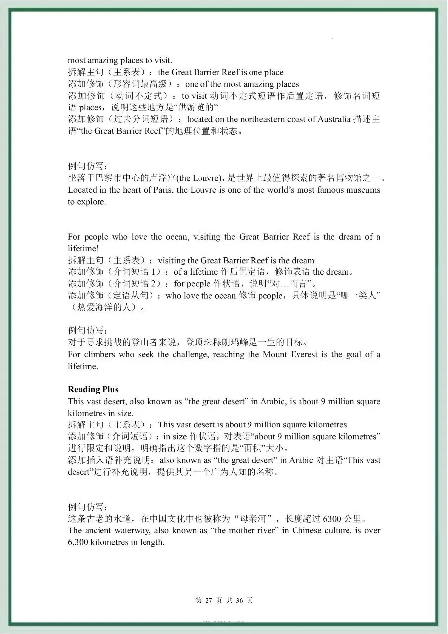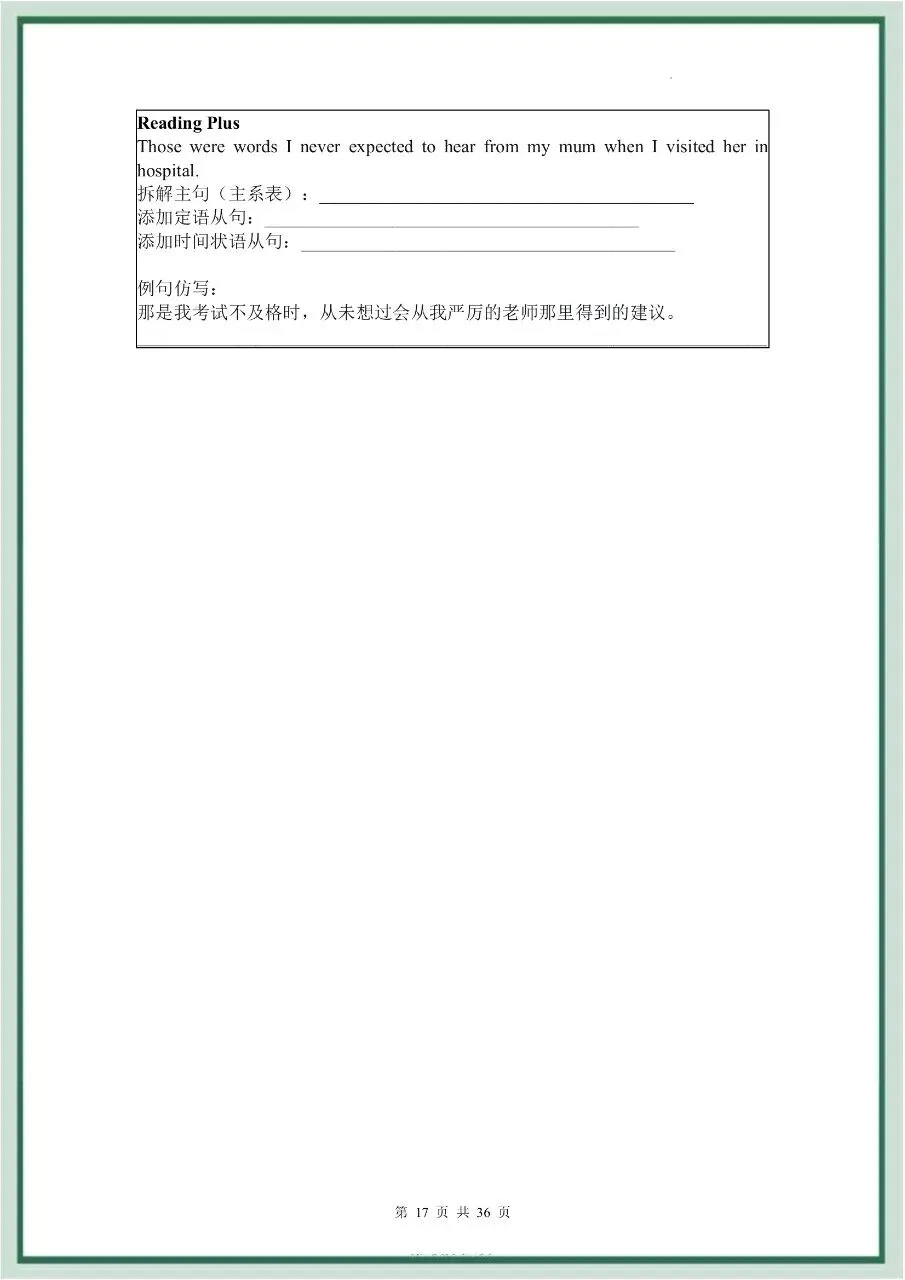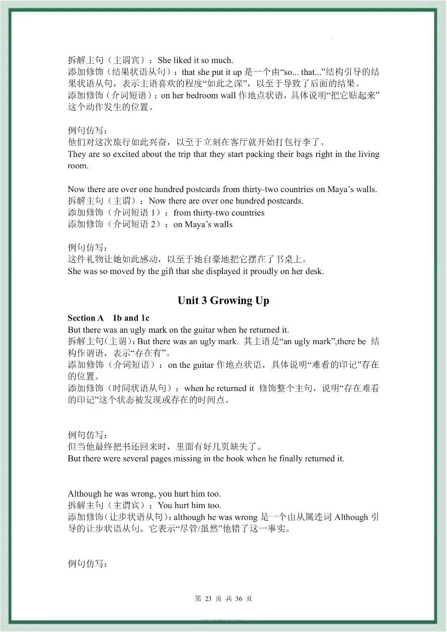 很多同学英语写作丢分,不是单词不会,而是句式不会用、文章不会搭。这份按最新教材整理的句子拆解与仿写,把八下核心句型拆得清清楚楚,结构一看就懂,换词就能仿写,不用死记硬背整篇范文。
