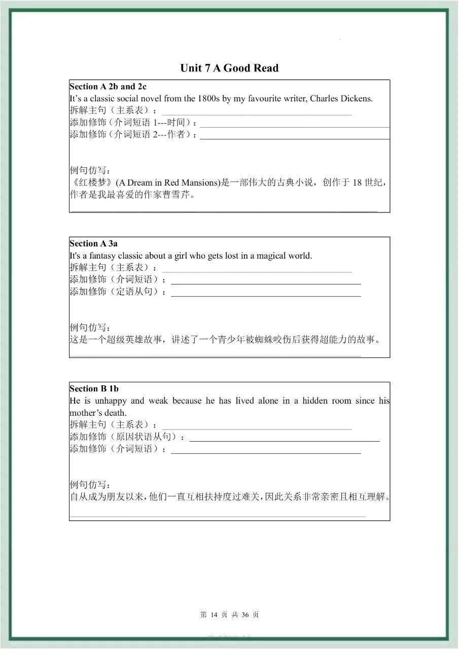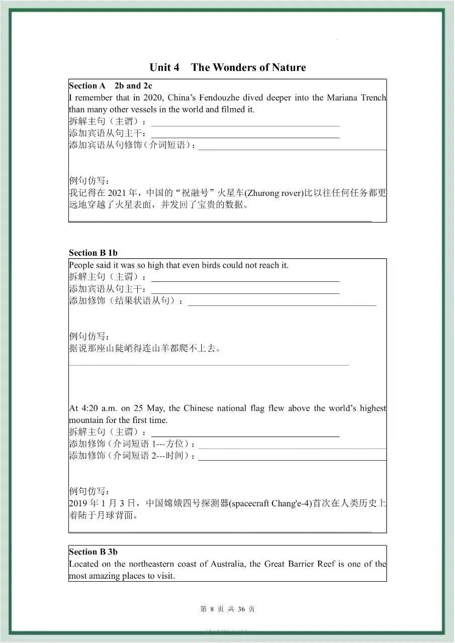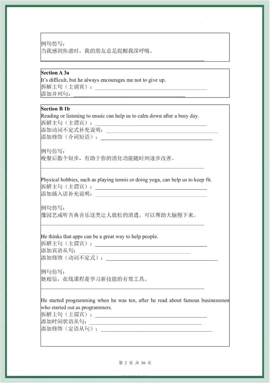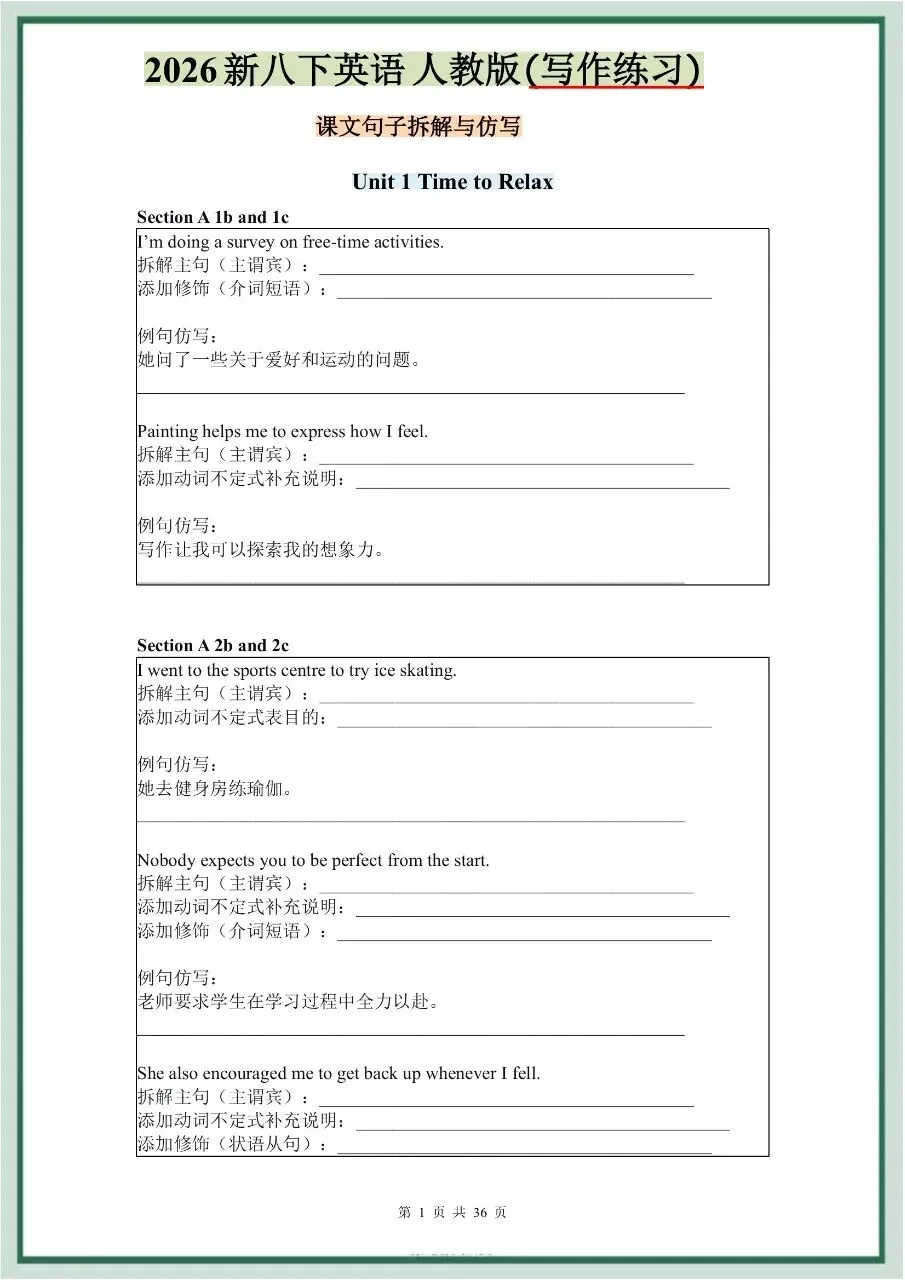 2026年最新版八年级下册英语写作练习句子拆解与仿写,有完整可打印,学霸学习好帮手,建议家长打印,学霸人手一份!