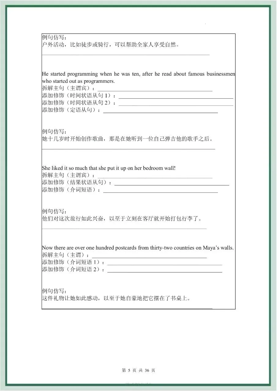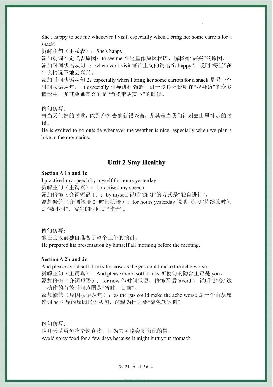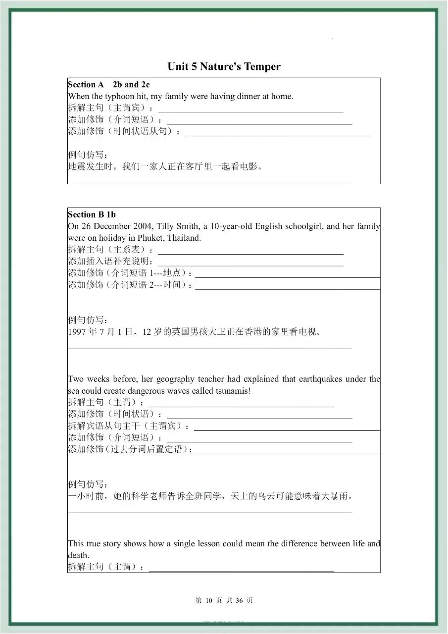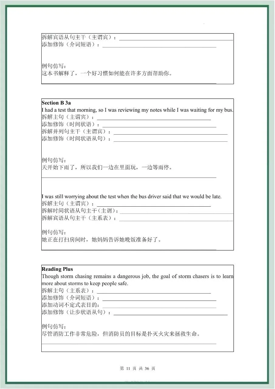 2026年最新版八年级下册英语写作练习句子拆解与仿写,有完整可打印,学霸学习好帮手,建议家长打印,学霸人手一份!