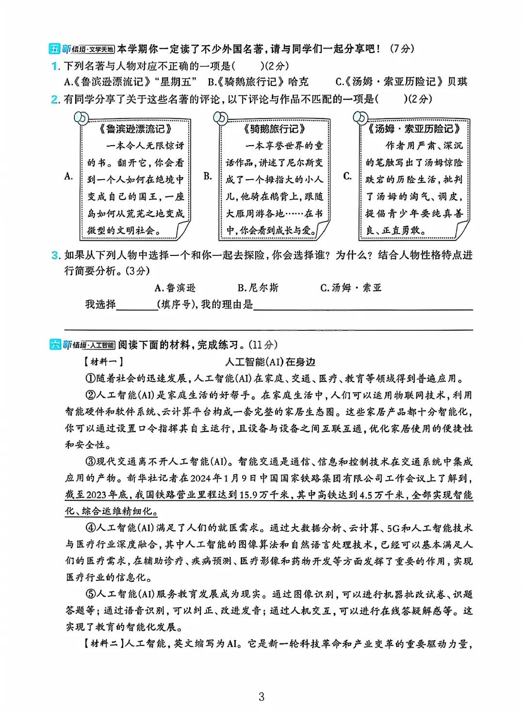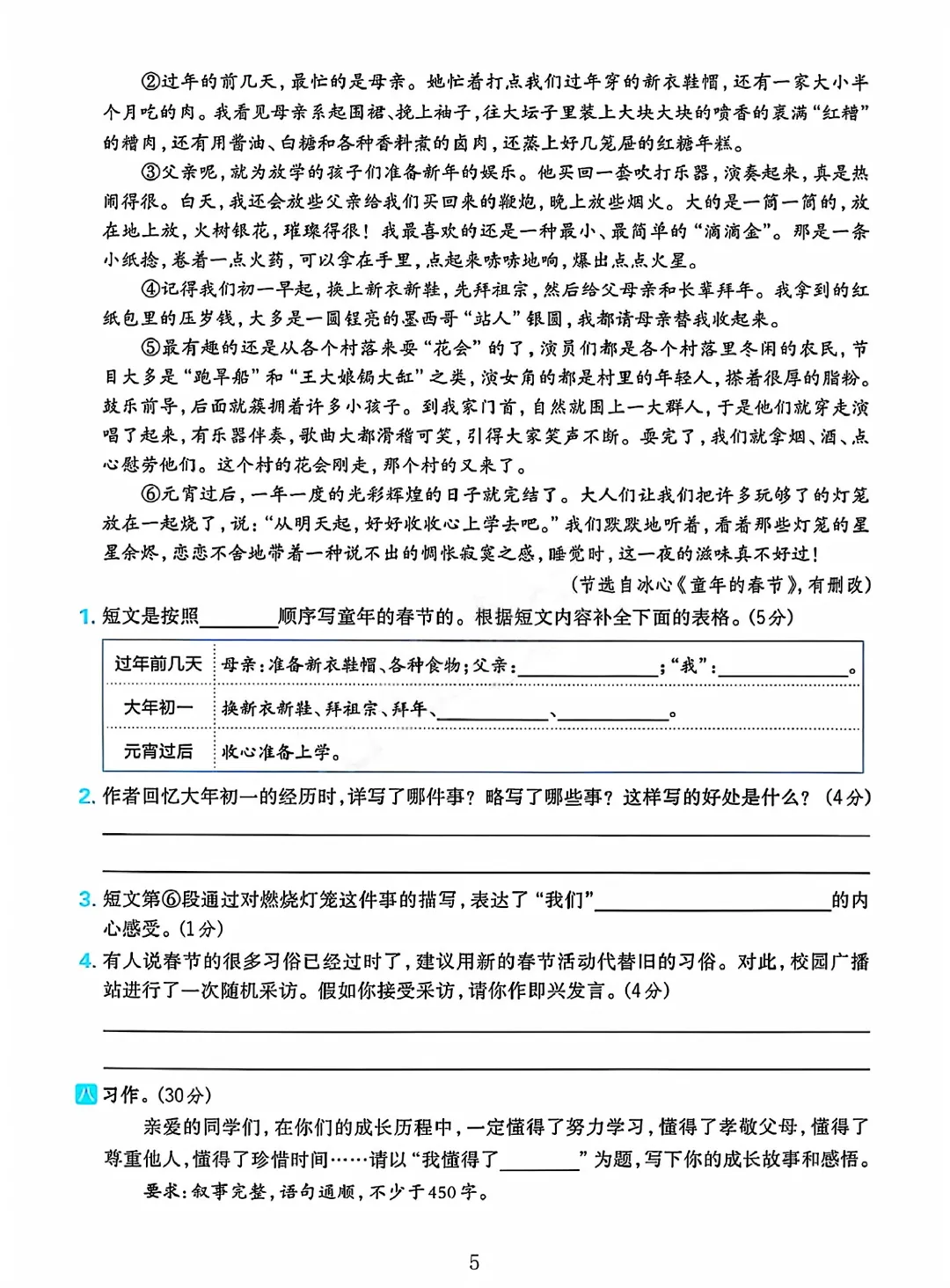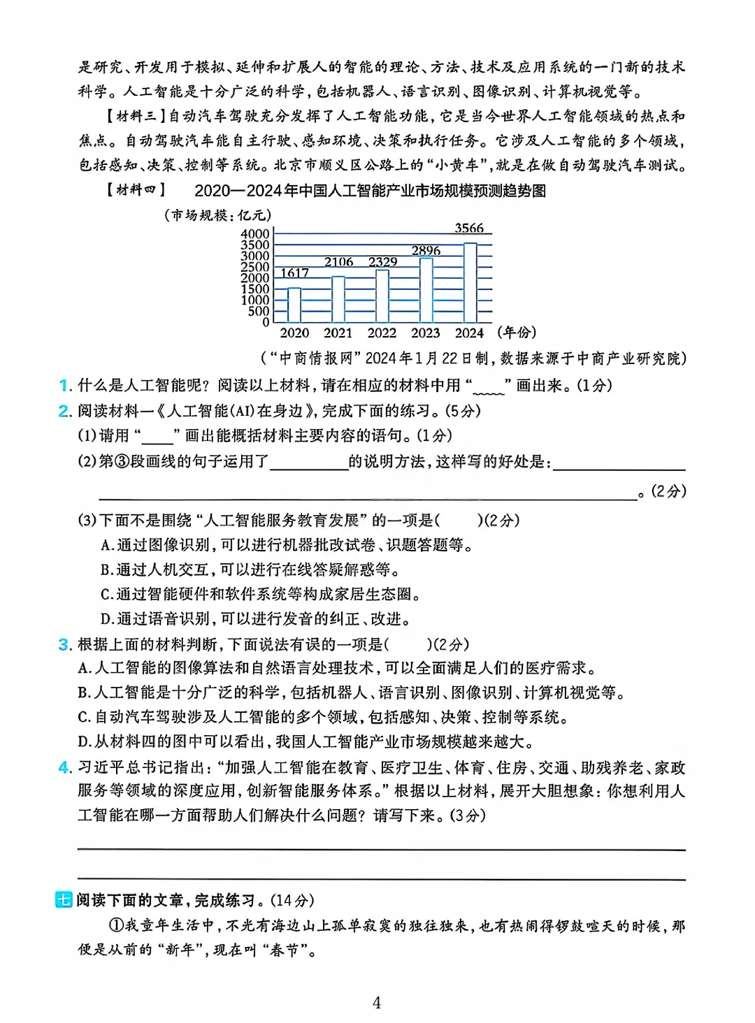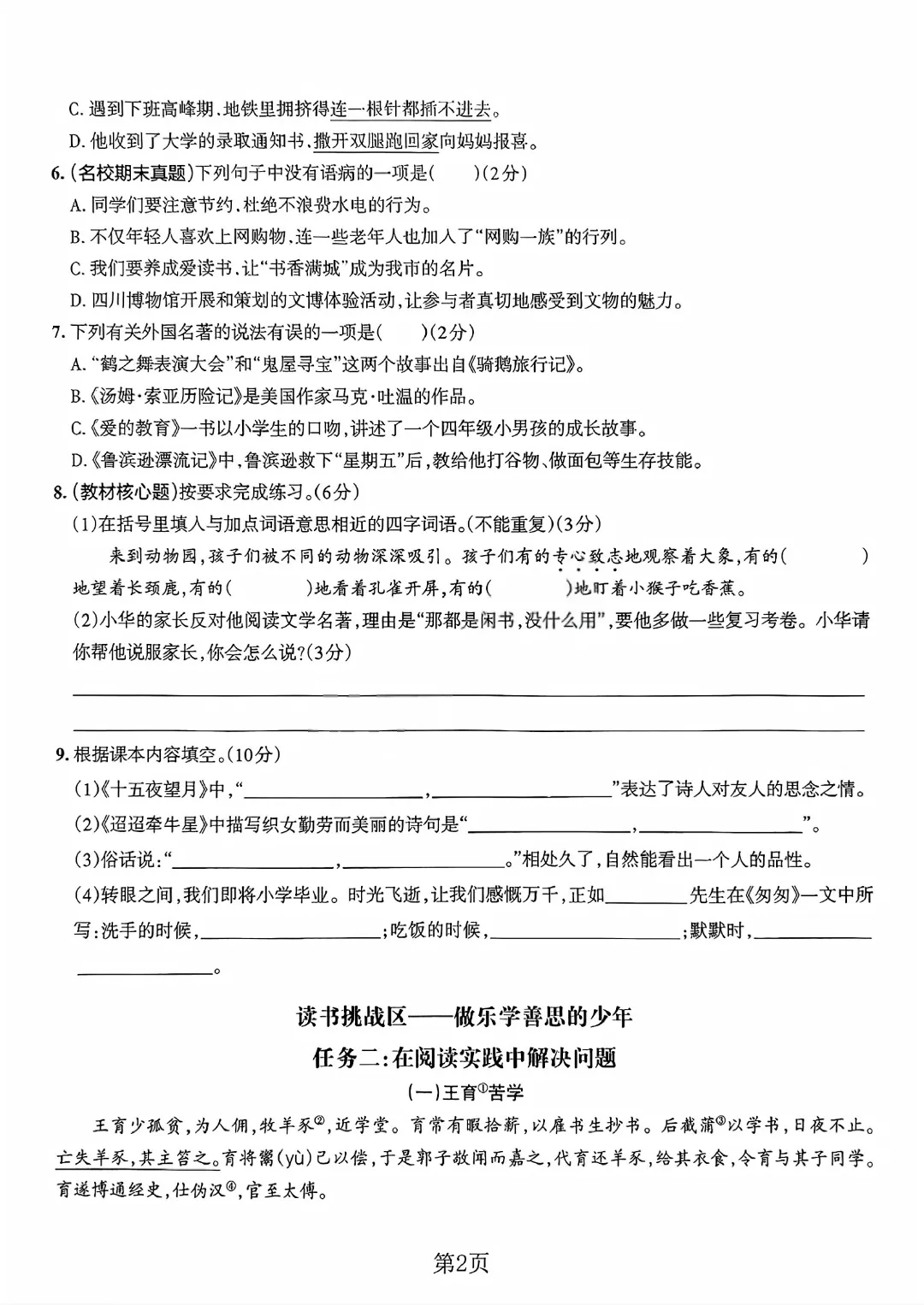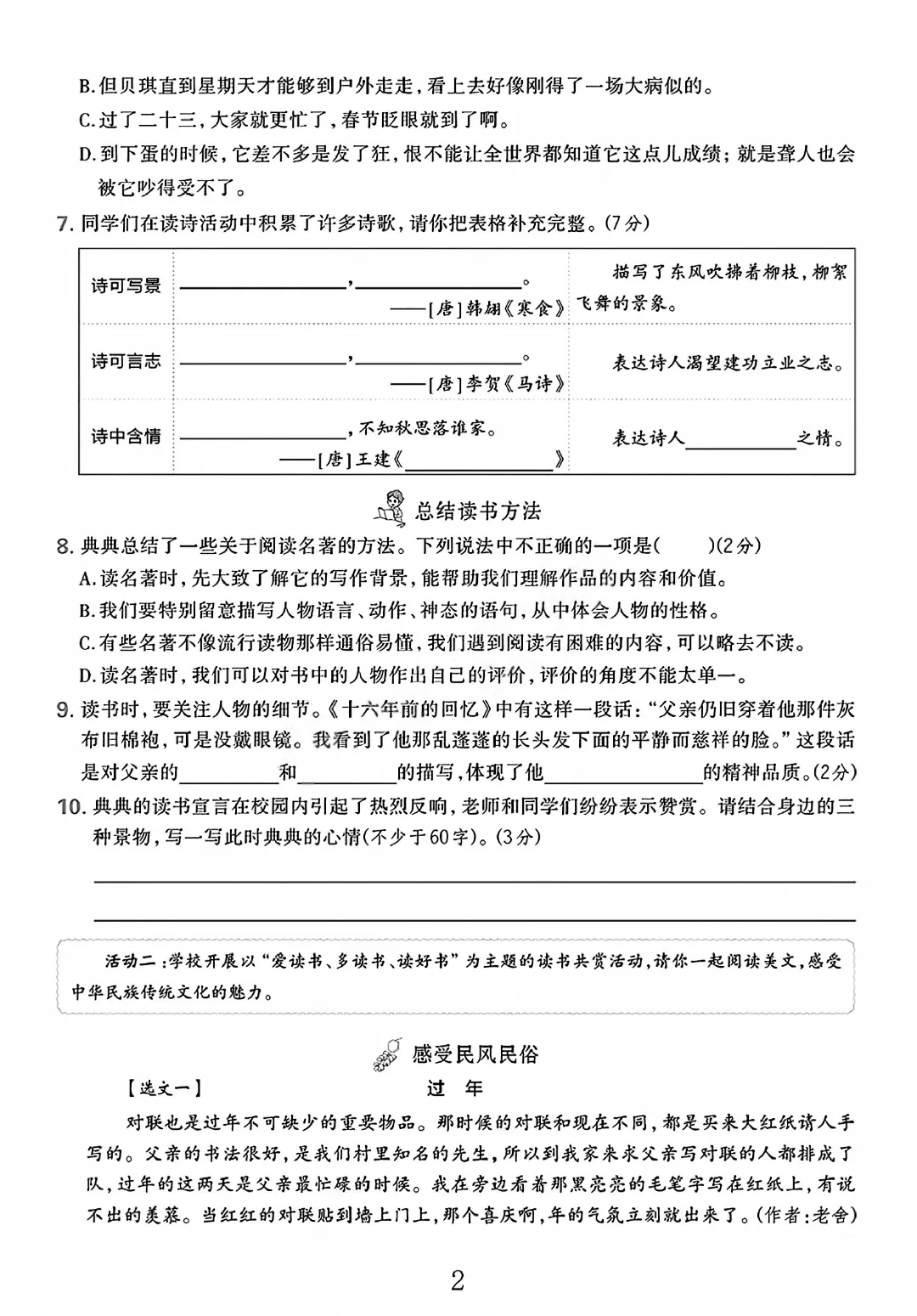 2026春六下语文人教版期中测试卷电子版可打印