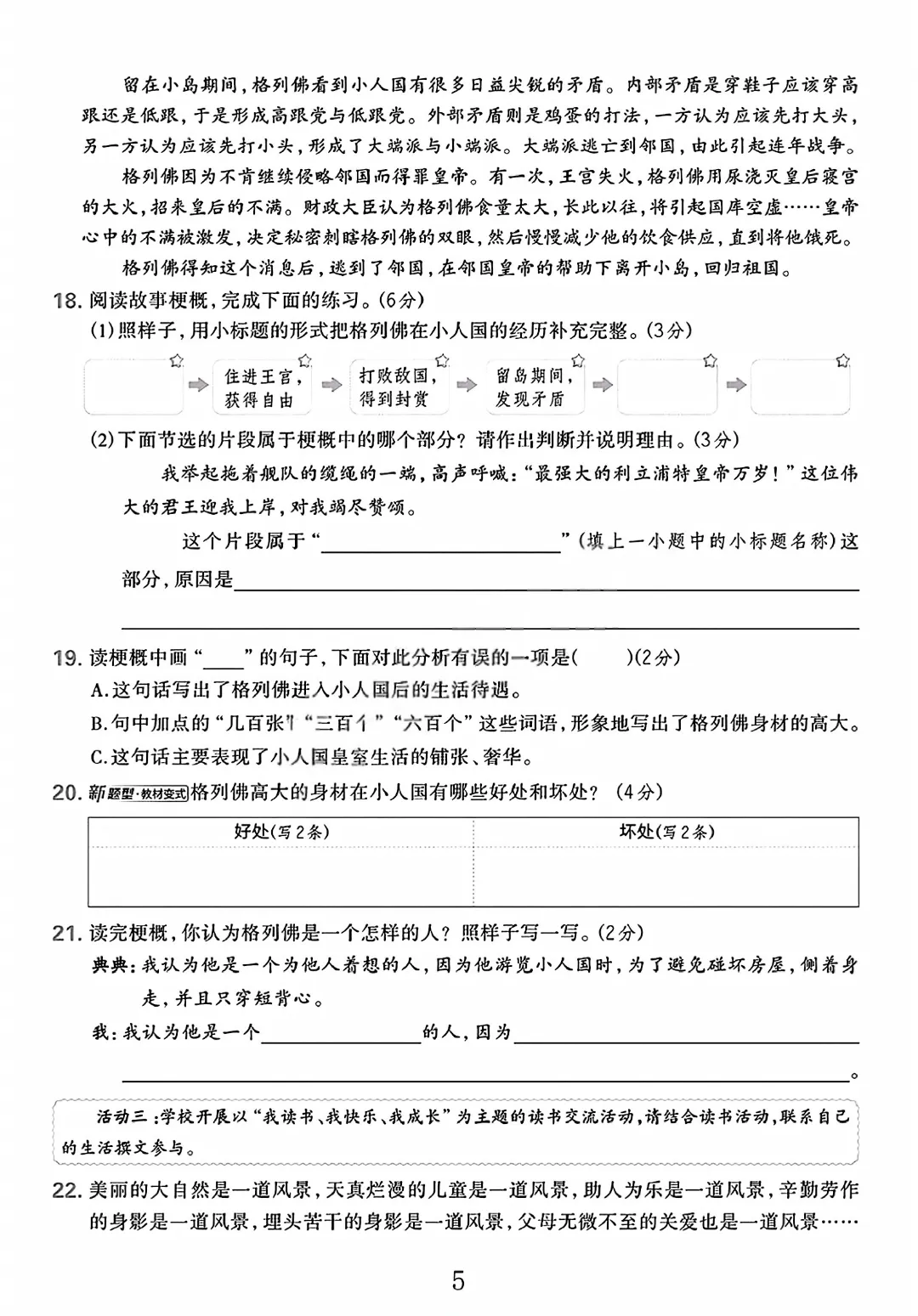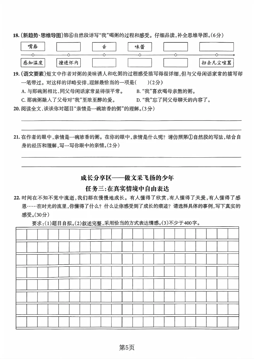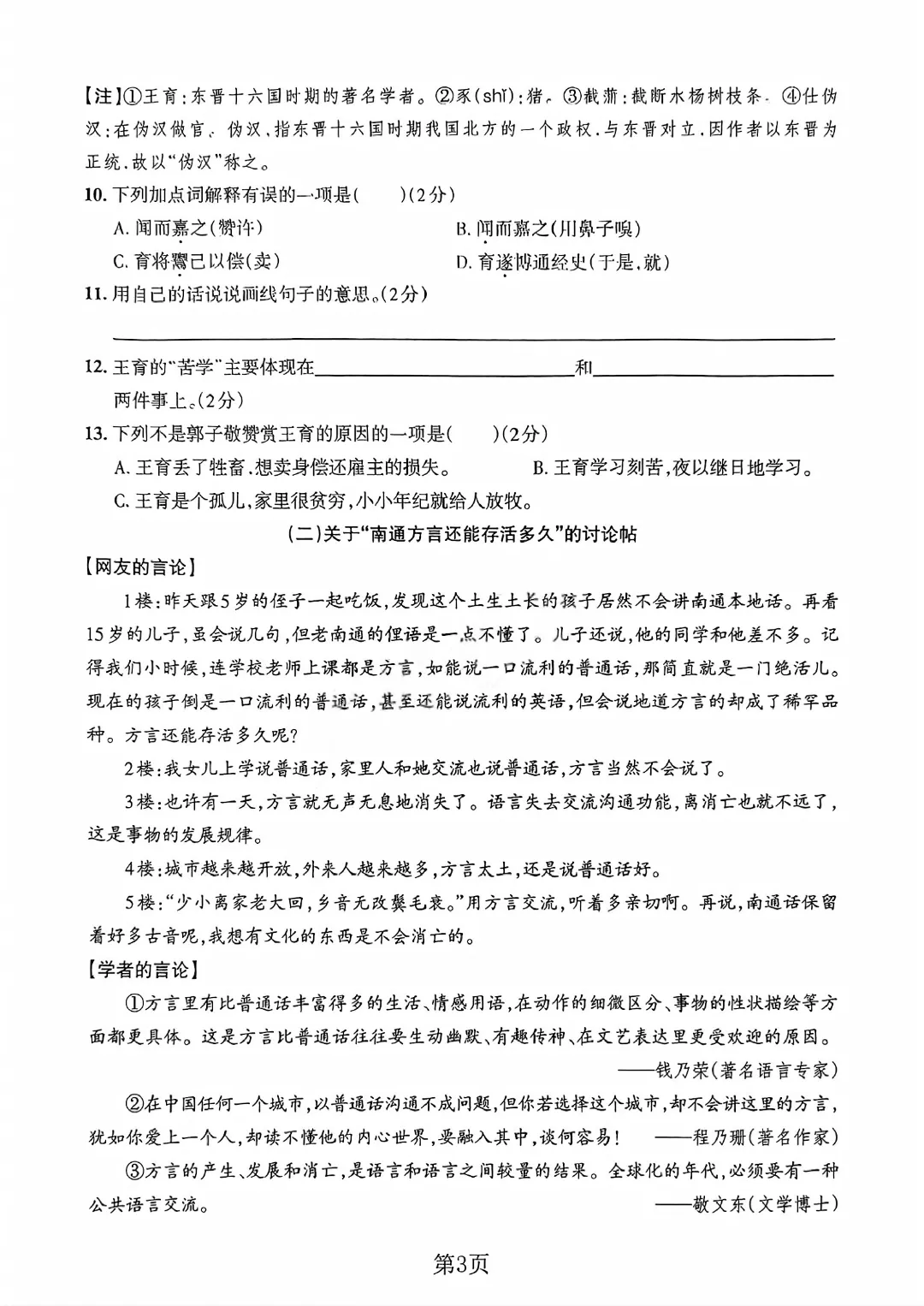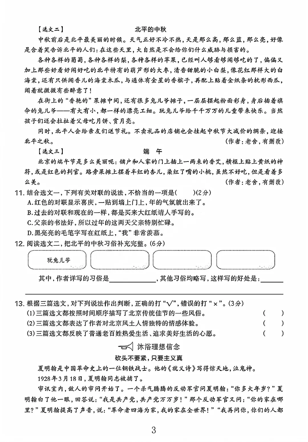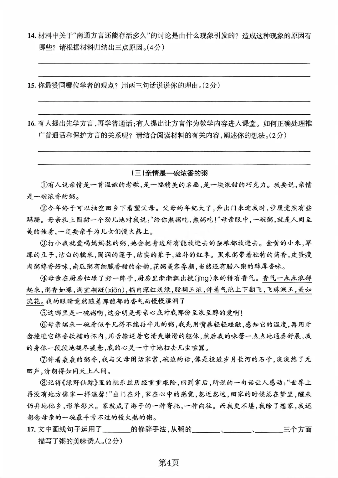 语文试卷部分展示