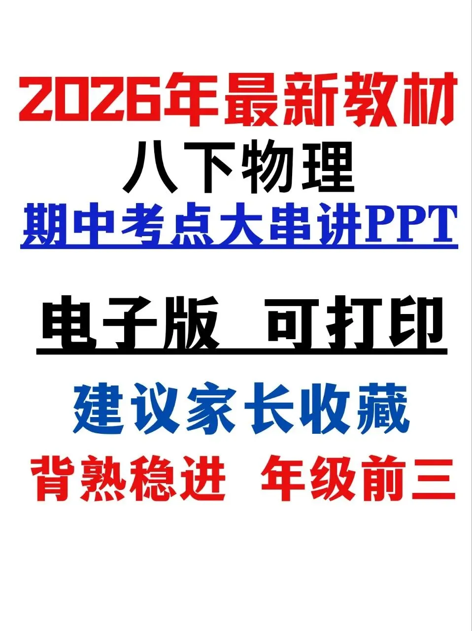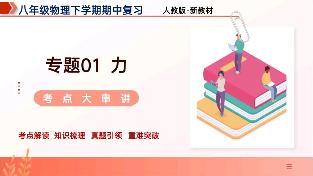 物理期中想拿高分,关键就是抓考点、理思路、练题型。这份专门为期中复习整理的PPT,紧扣最新教材,把全册核心考点、公式规律、易错难点全部串讲到位,一页一个重点,不用再盲目翻书找内容。