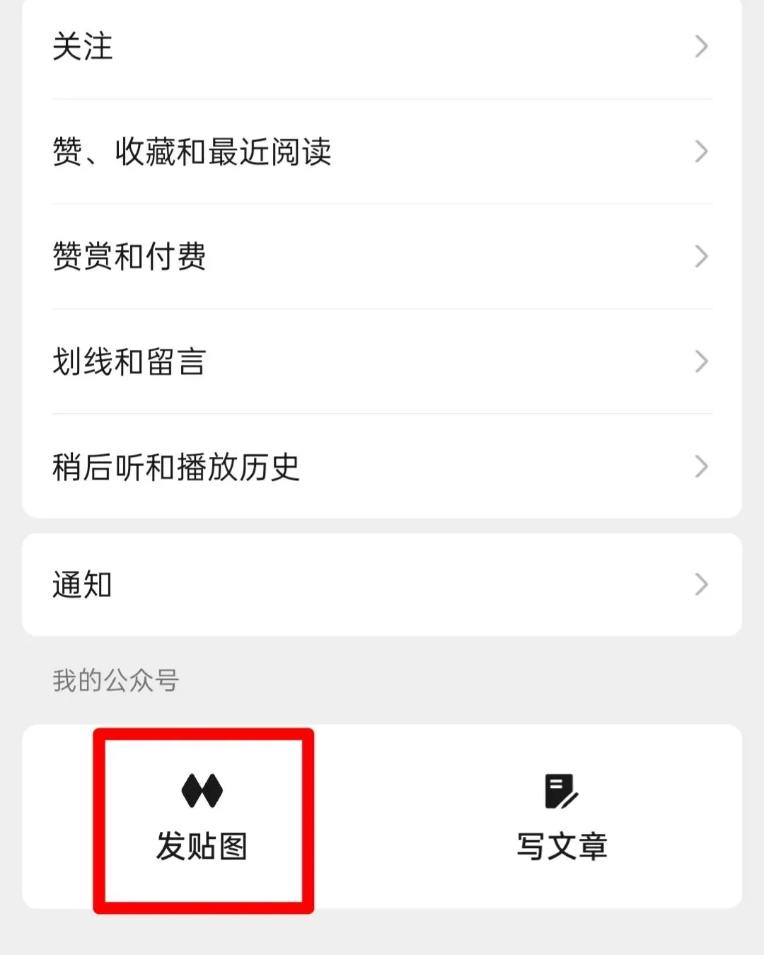 公众号个人中心里,发贴图图标从照片样式,换成和服务号一致的双菱形样式,更统一。