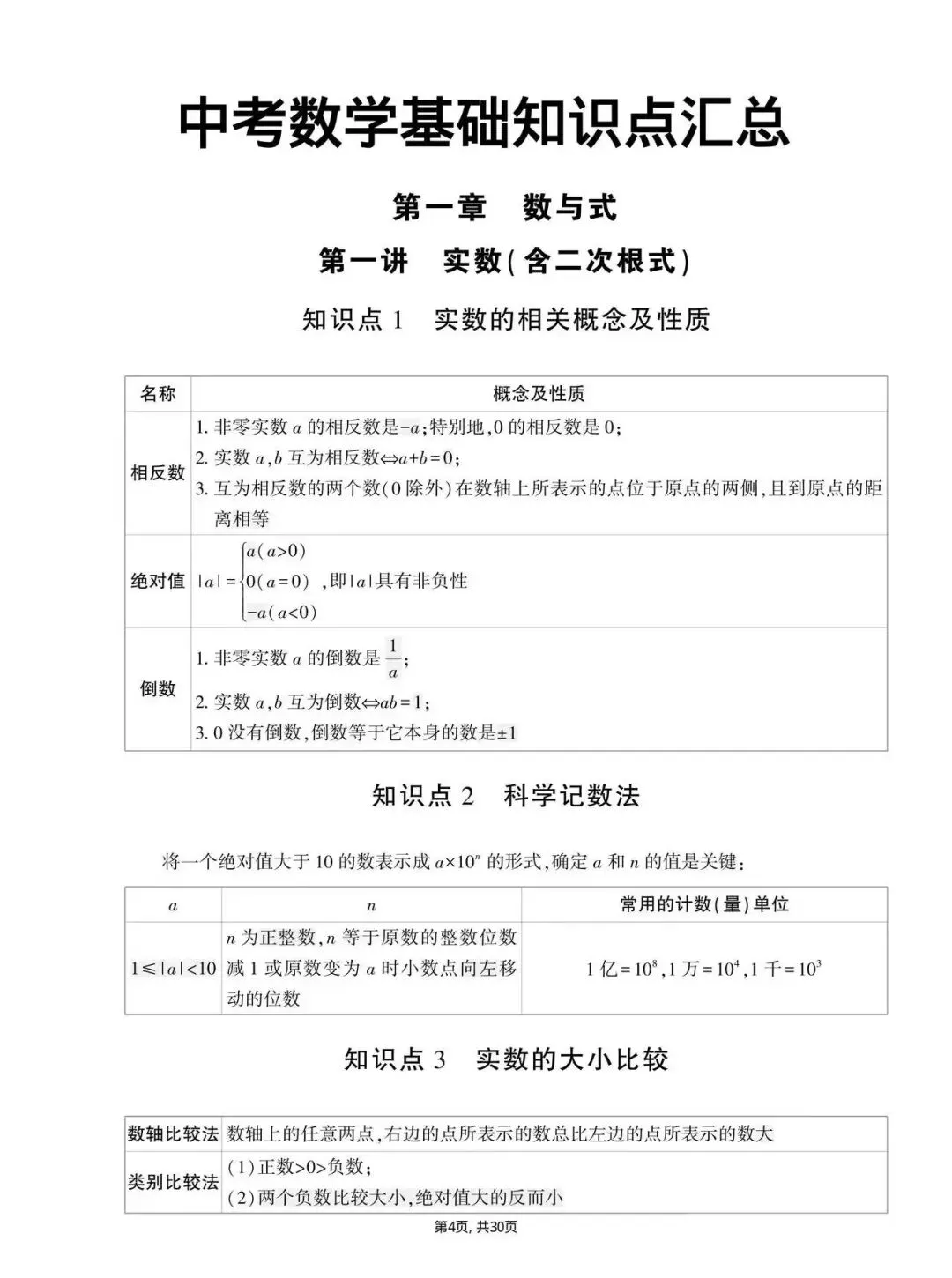 中考数学7-9年级基础知识点汇总(电子版可打印)