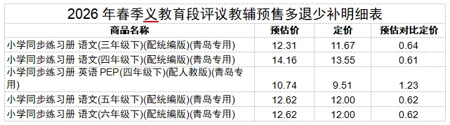 根据上级安排,2026年春季评议教辅退差价仍通过“山东评议教辅订购平台”开展,退款金额由平台按原支付路径陆续统一返还,平台清算时间为 2026 年 4 月 17 日至 4月 23日。