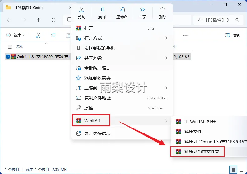 1.右键下载的插件压缩包,并【解压到当前文件夹】