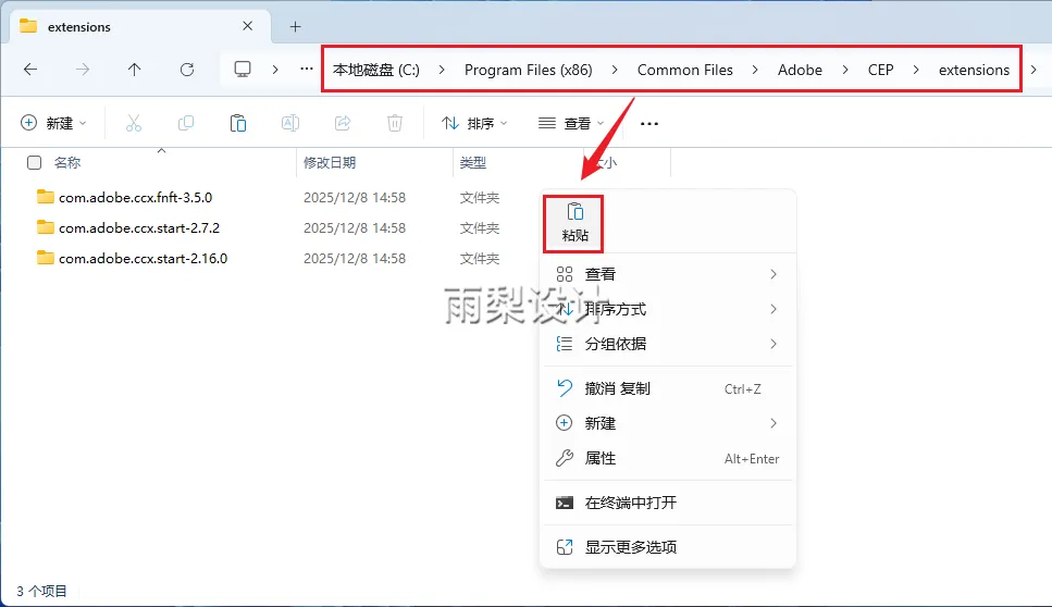 2.复制【CN Oniric 1.3.0 CC win】文件夹,粘贴到【C:\Program Files (x86)\Common Files\Adobe\CEPxtensions\】或【PS安装目录的 Required\CEP\extensions】