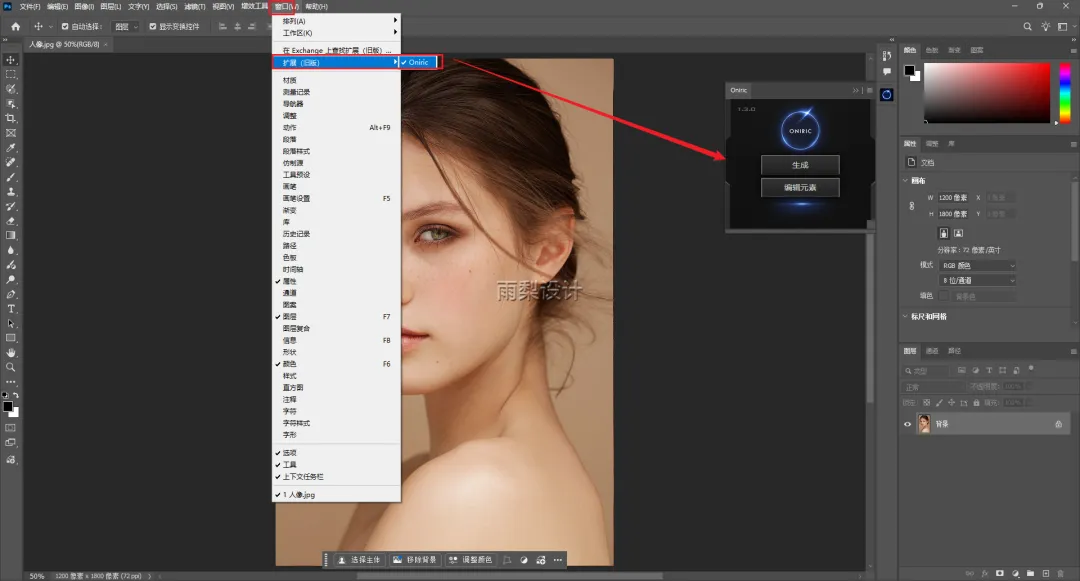 3.打开PS软件:点击【窗口】>【扩展】>【Oniric】
