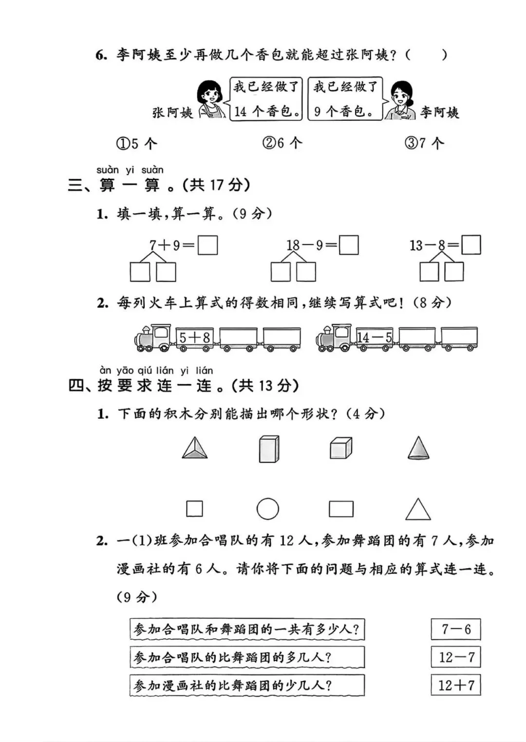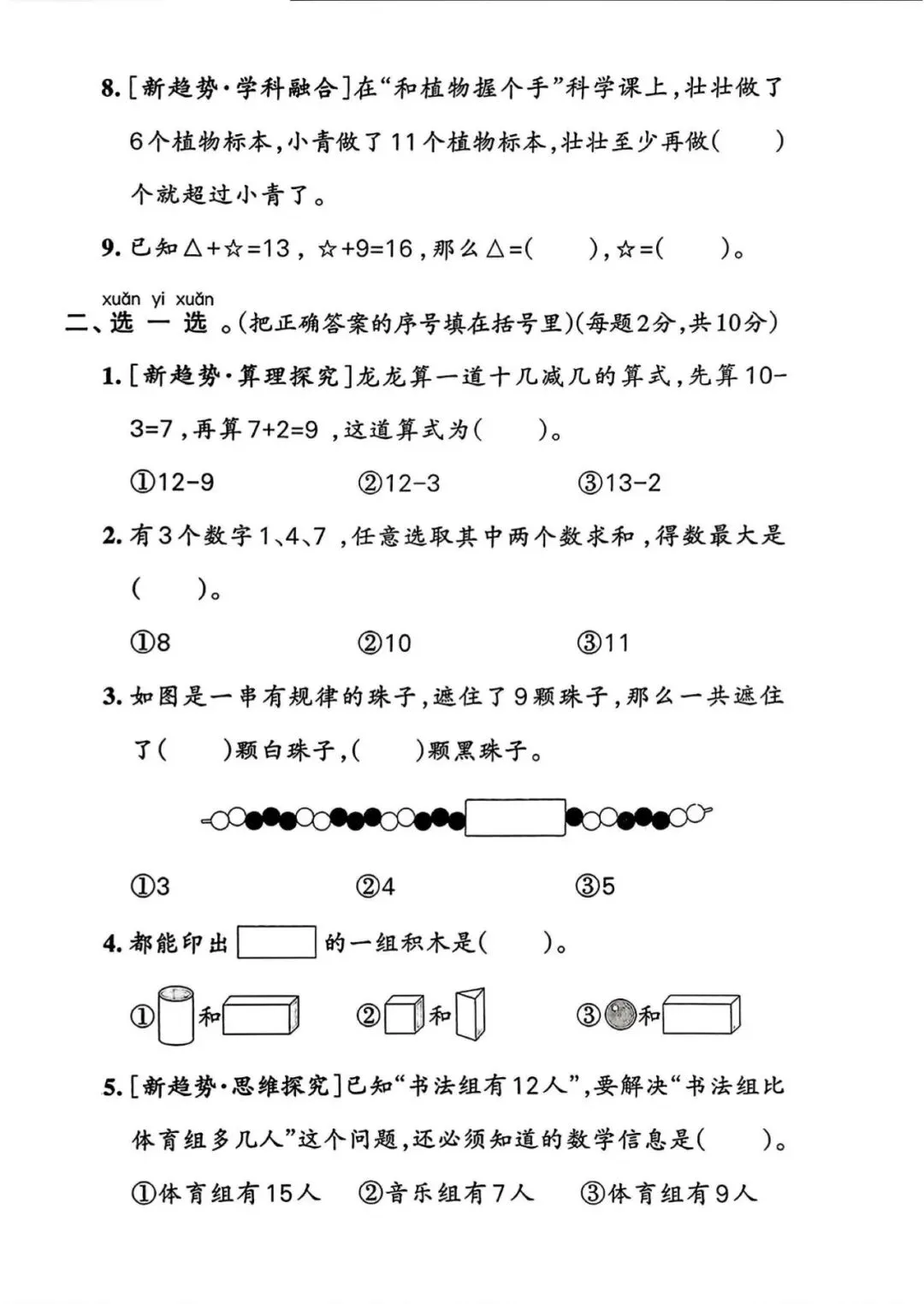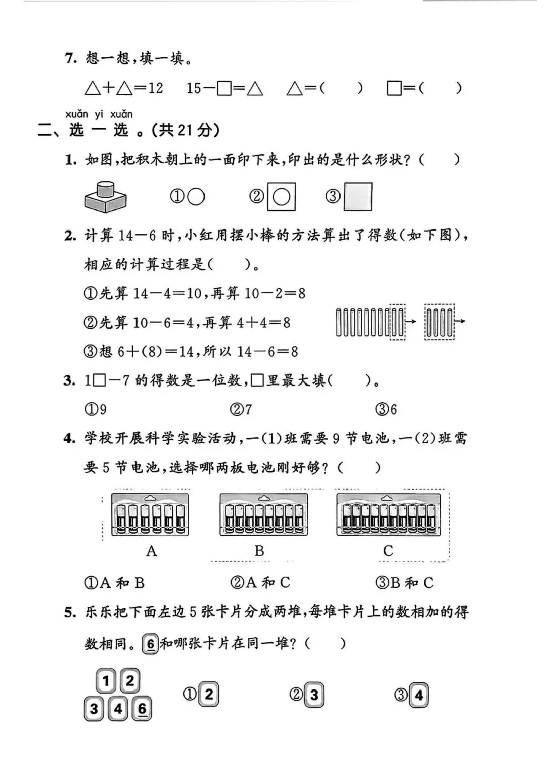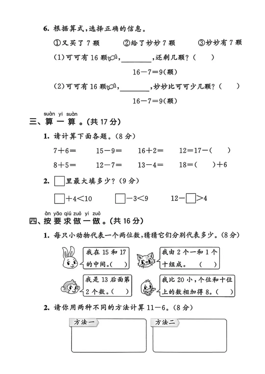 大家好,我是蒂尼江,今天分享的是北师版一年级下册数学期中测试卷4套;附答案,关注我,每天持续分享更多的优质学习资料。