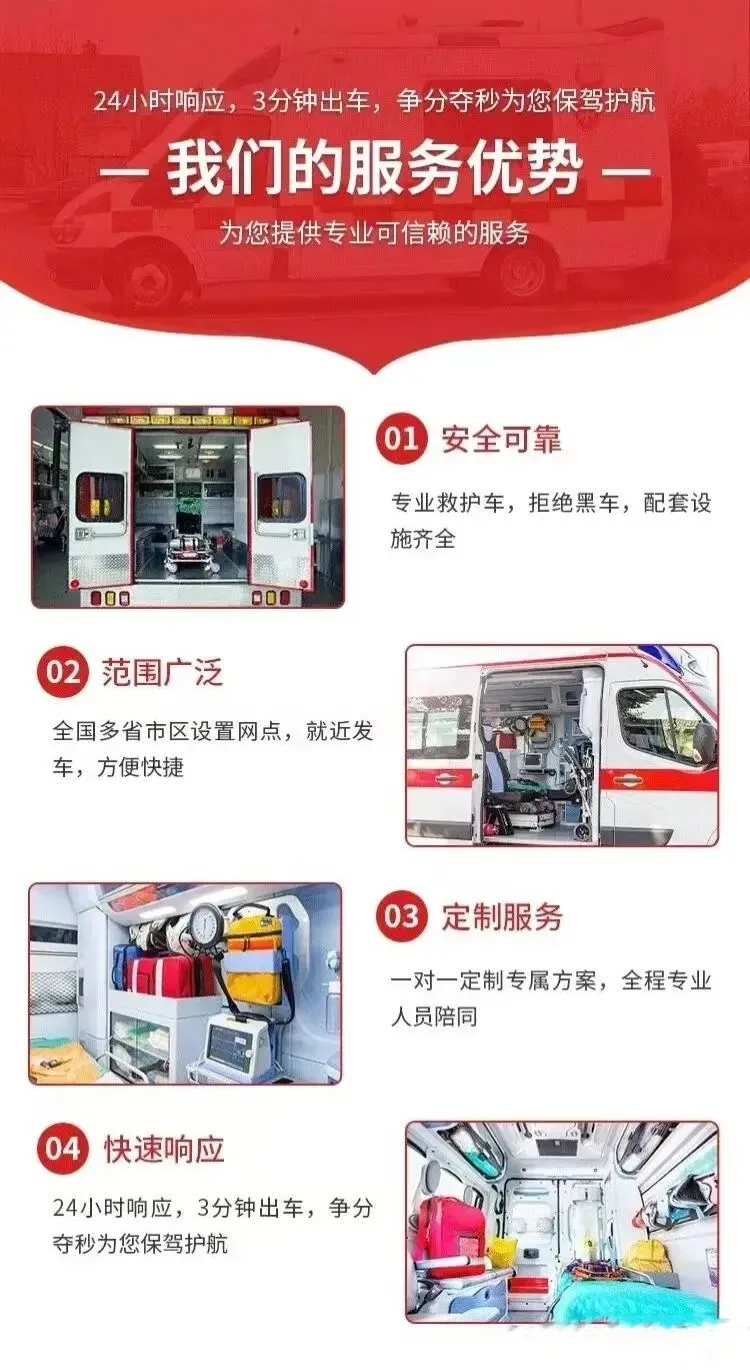 我们是一家正规备案的120救护车出租转运公司,提供全天候救护车出租、病人护送及跨省市医疗转运服务。每辆车均配备执业医护团队,确保转运途中生命体征稳定、应急处置及时。