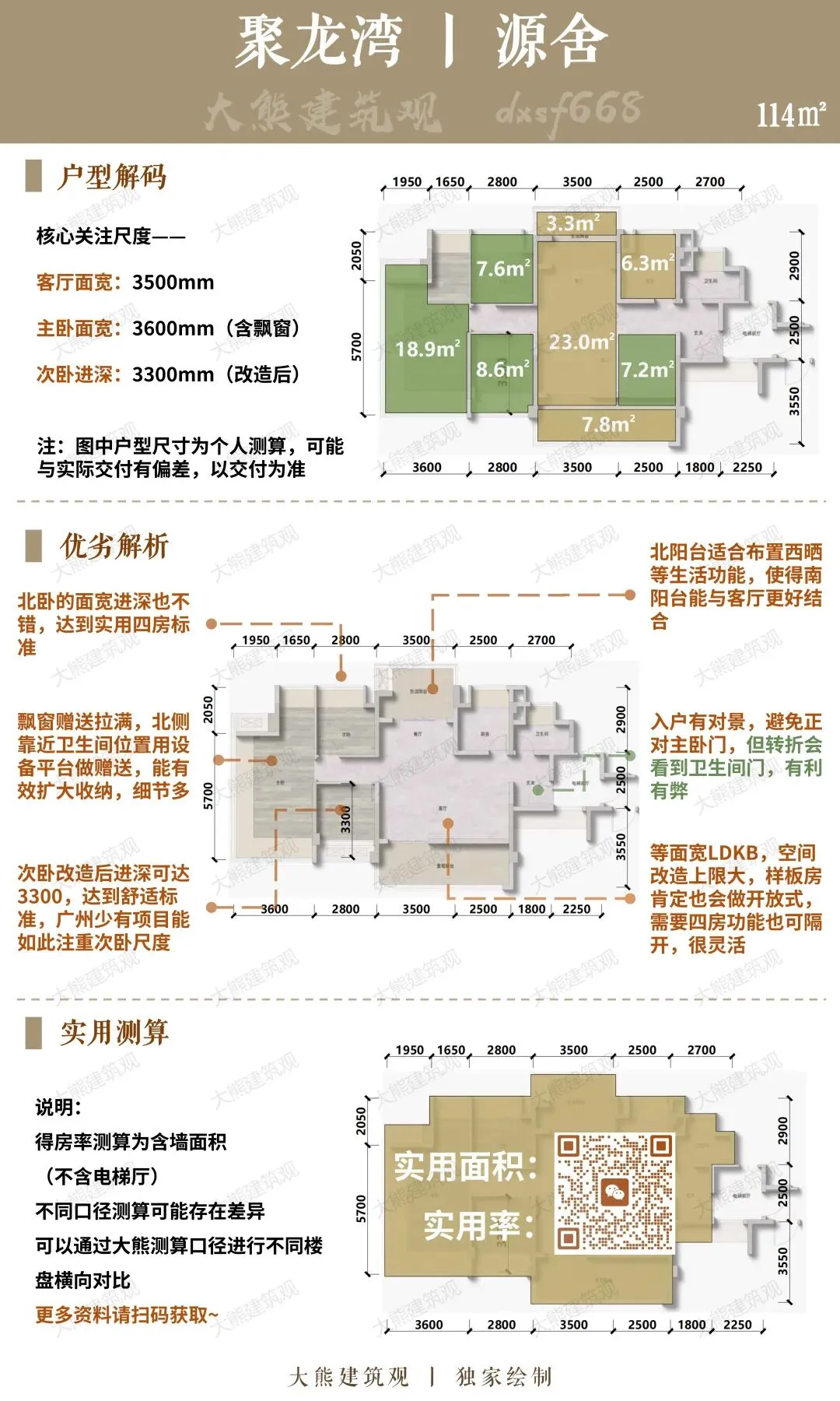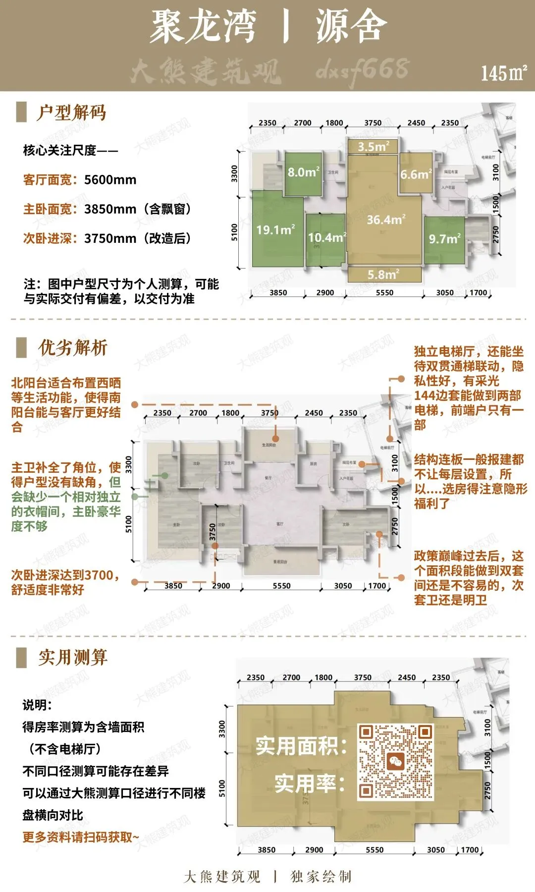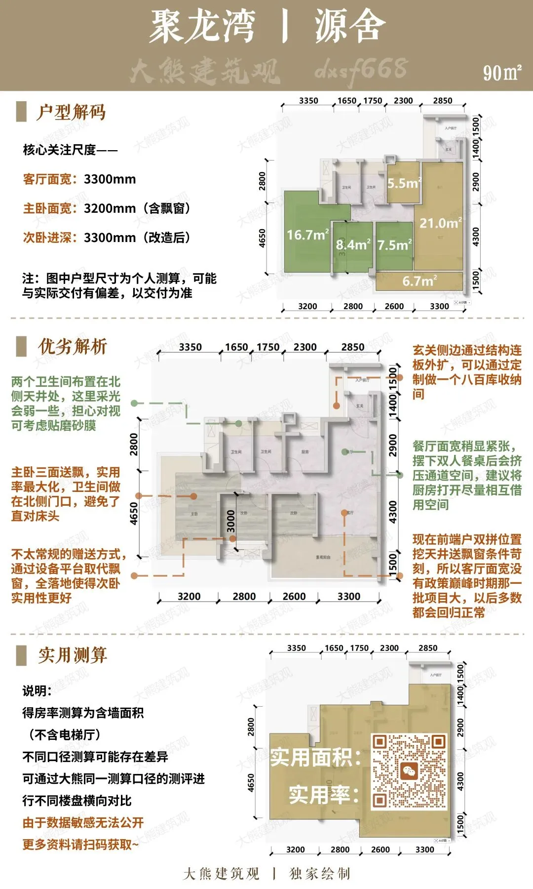 备注:图中面积、尺寸及实用率测算为个人口径,支持大熊同维度测评的不同楼盘横向对比,但与开发商统计口径可能存在差异