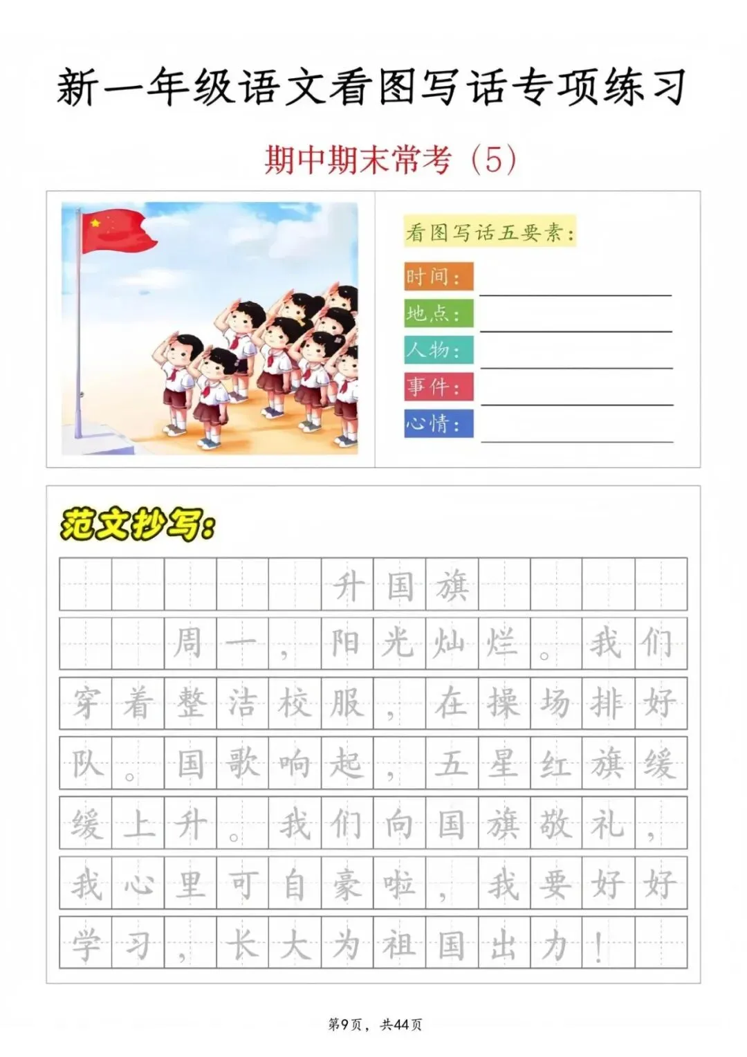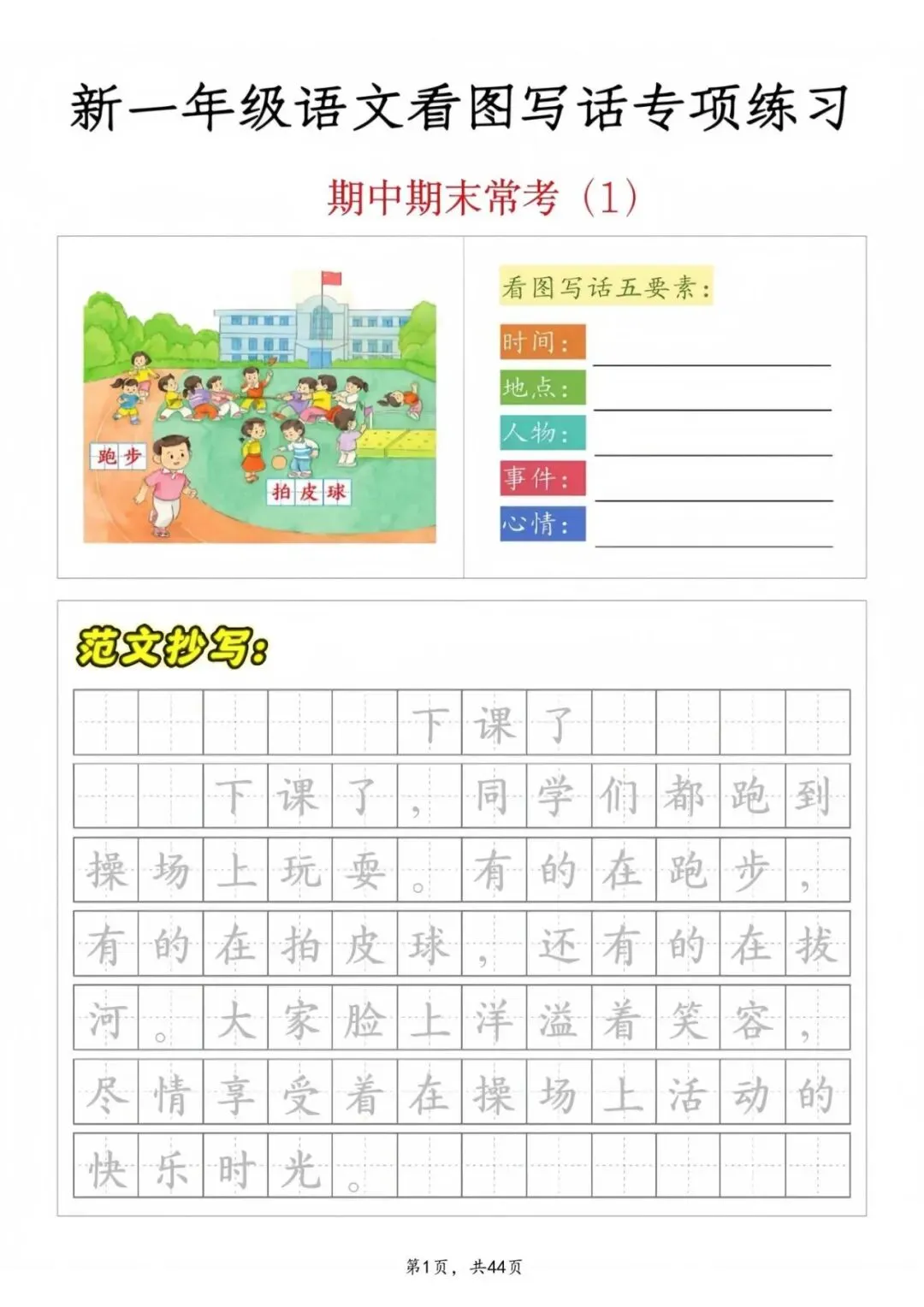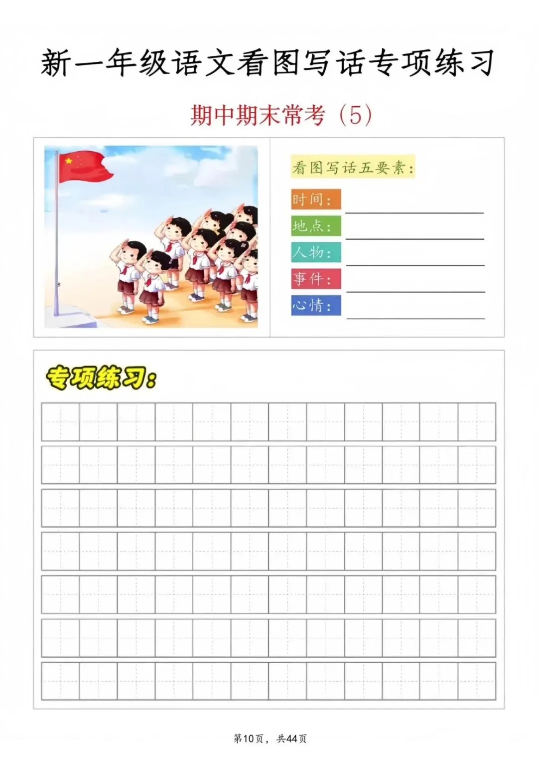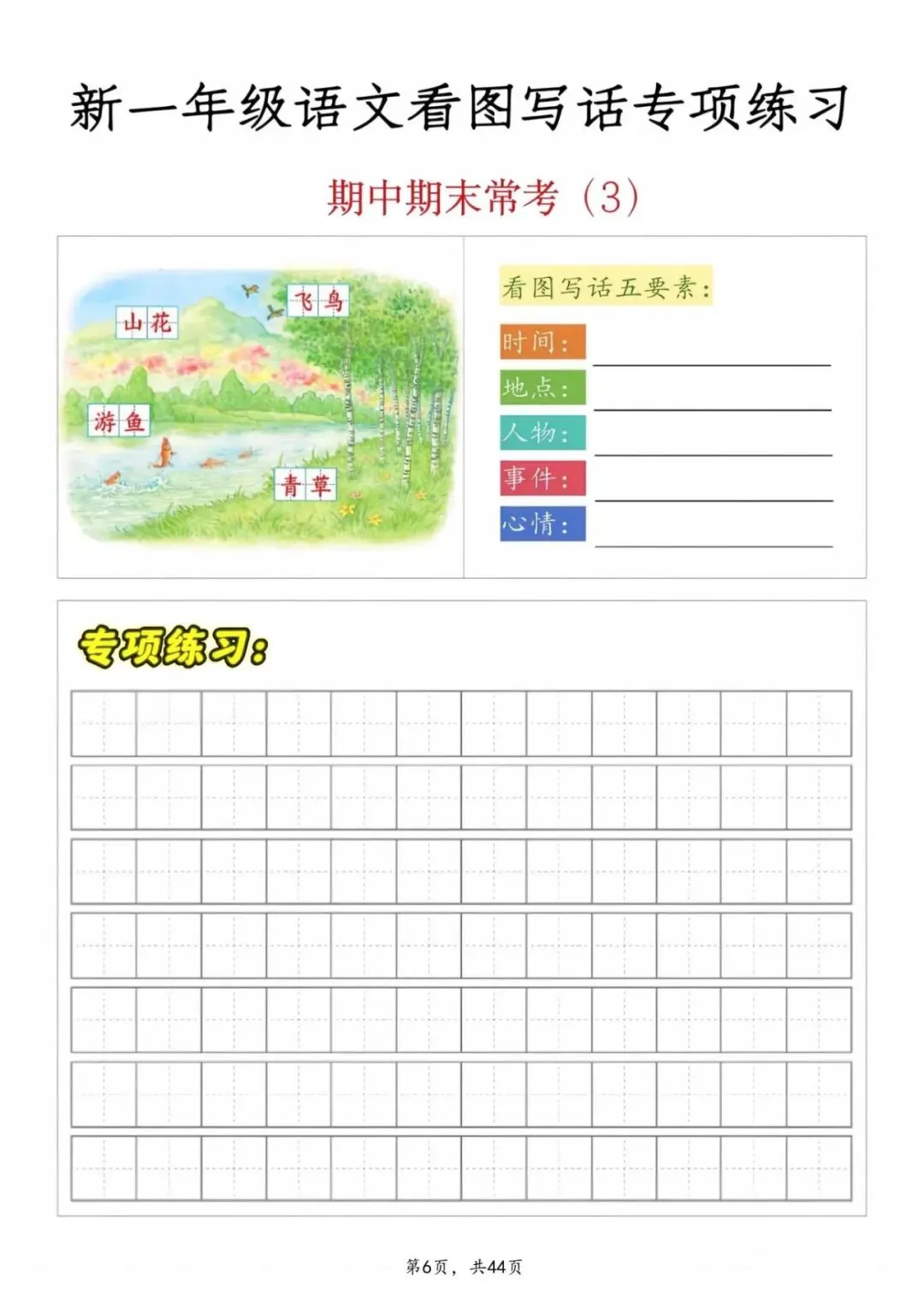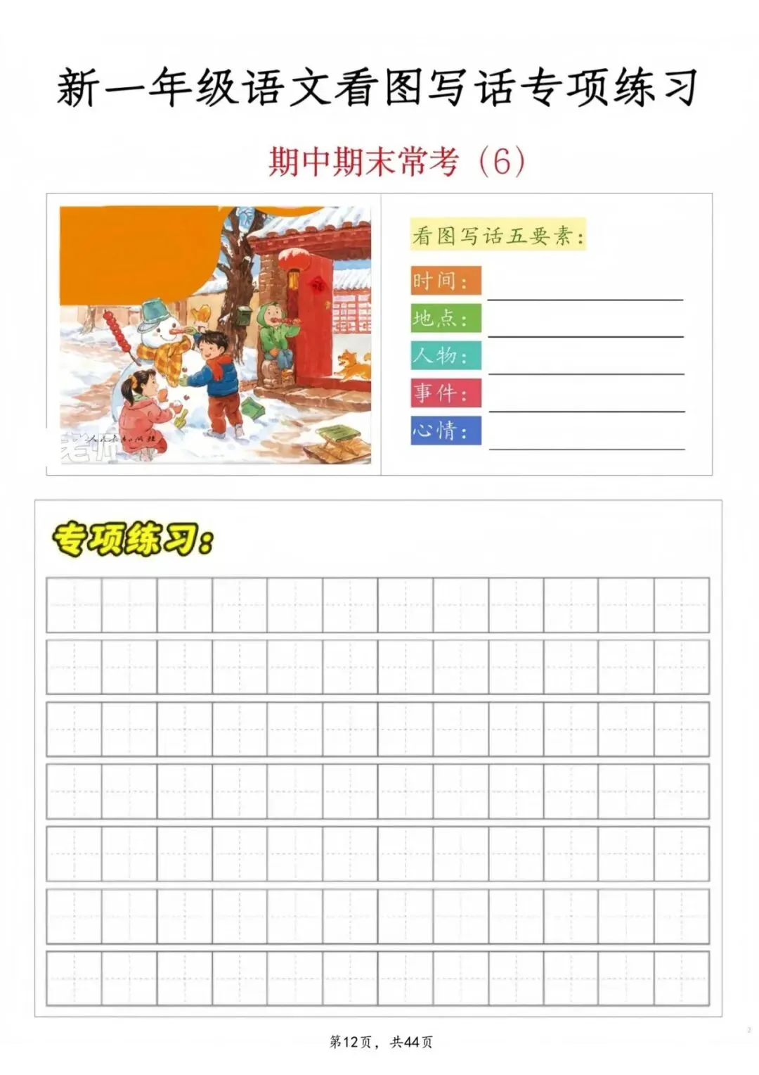 【期中复习】一年级语文看图写话专项练习,电子版可打印