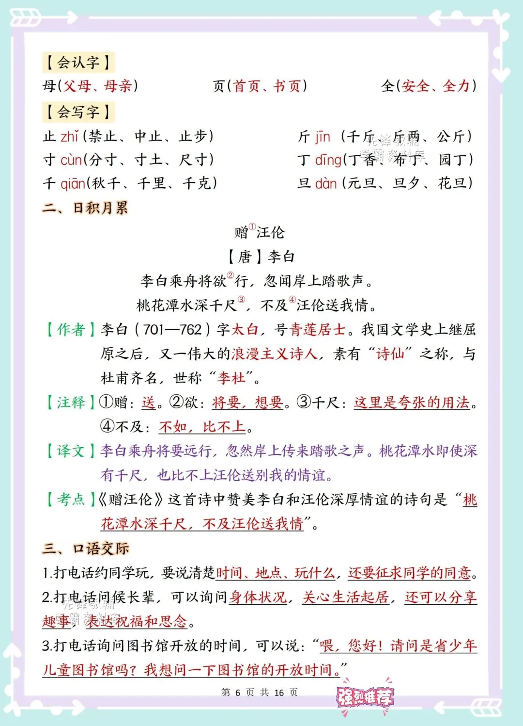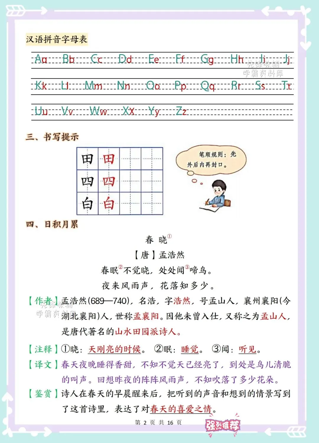 ✅ 全册梳理:1-8单元语文园地全覆盖,识字加油站、字词句运用、书写提示、日积月累,一个不落。