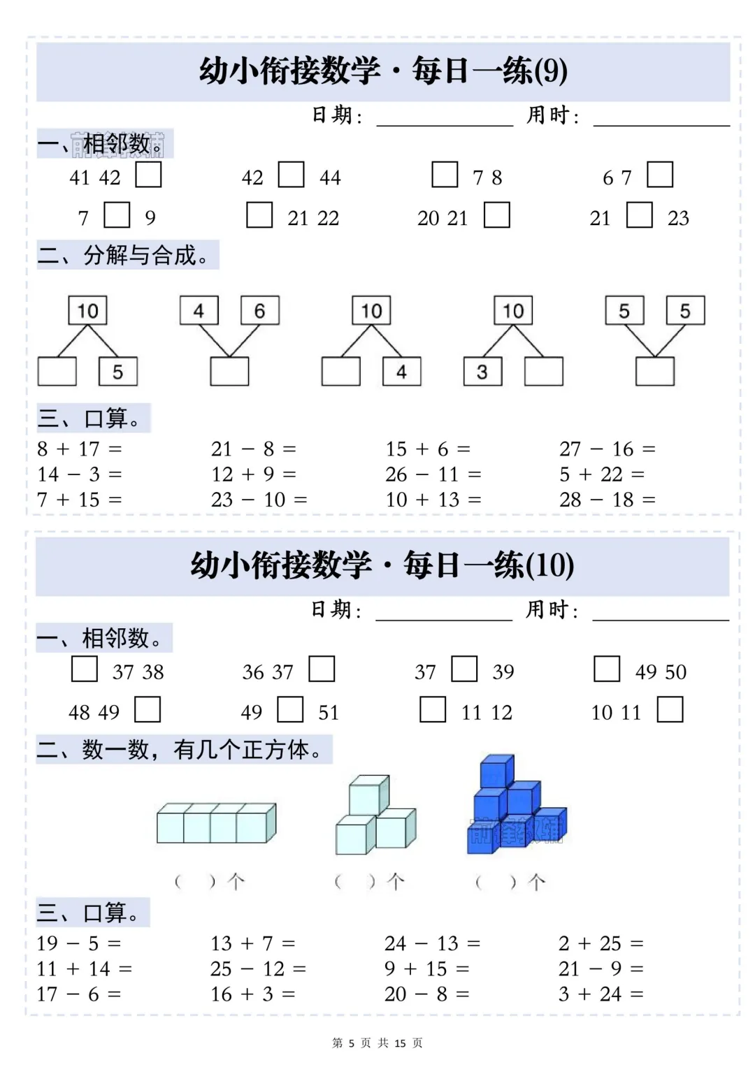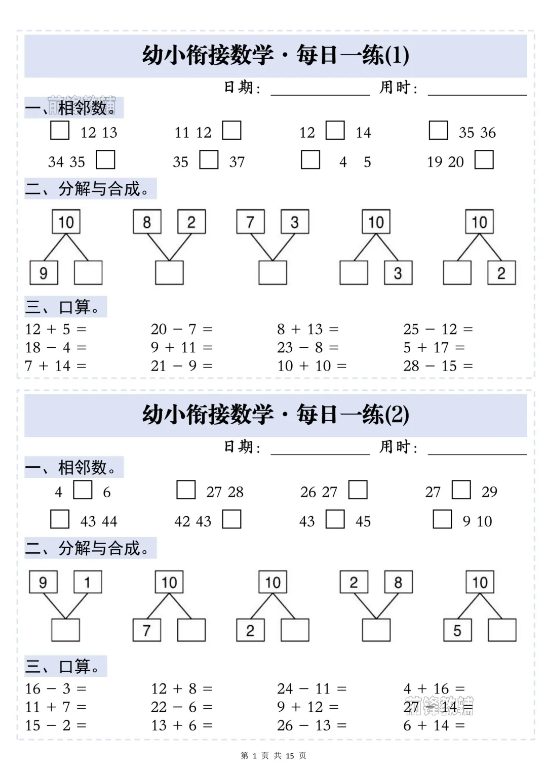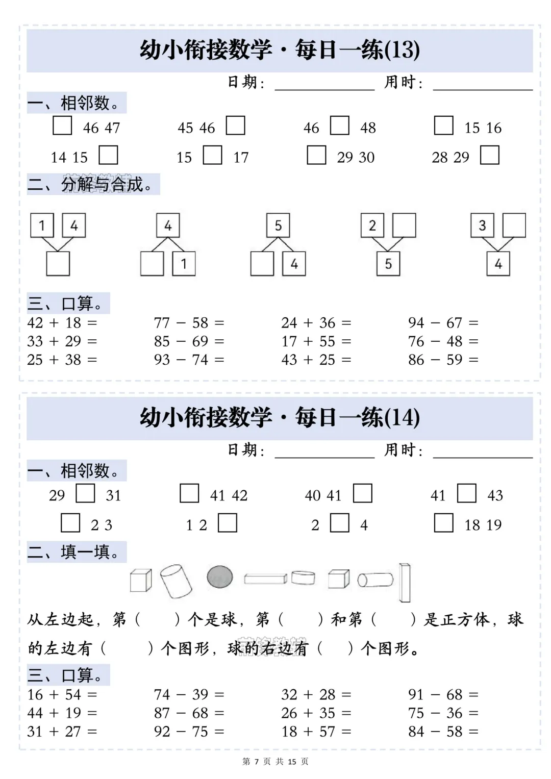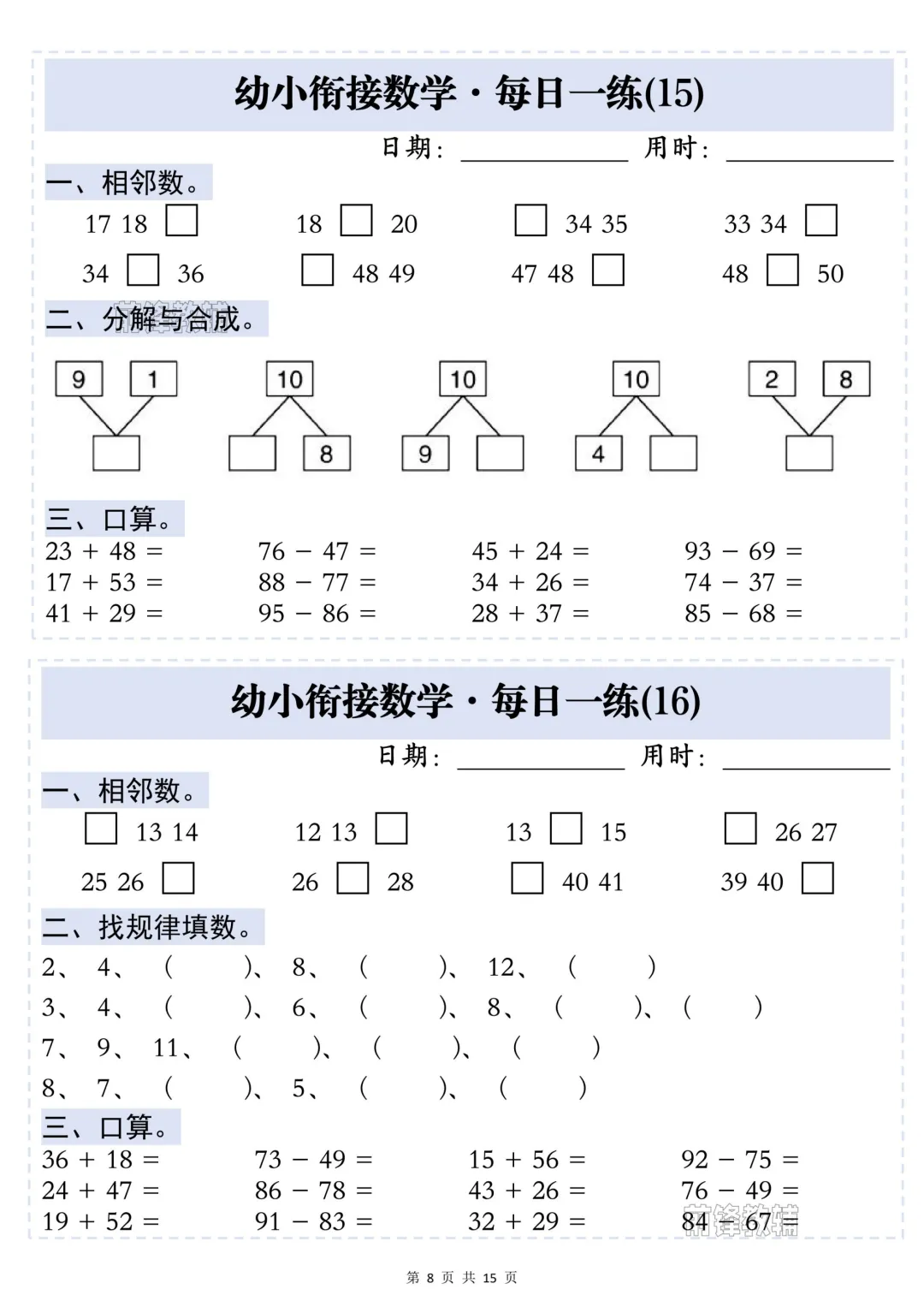 幼小衔接数学·每日一练——相邻数,完整电子版可下载打印.