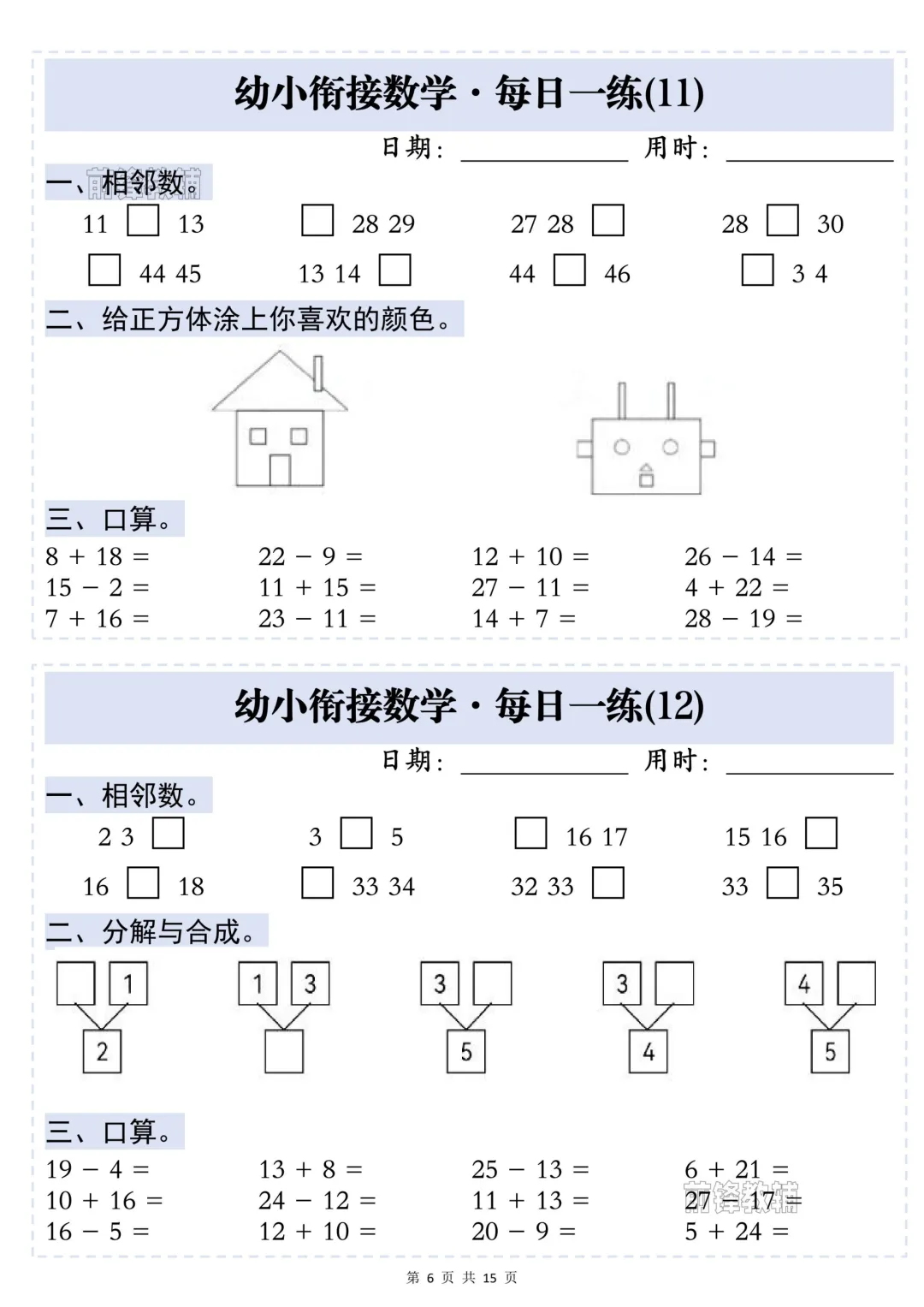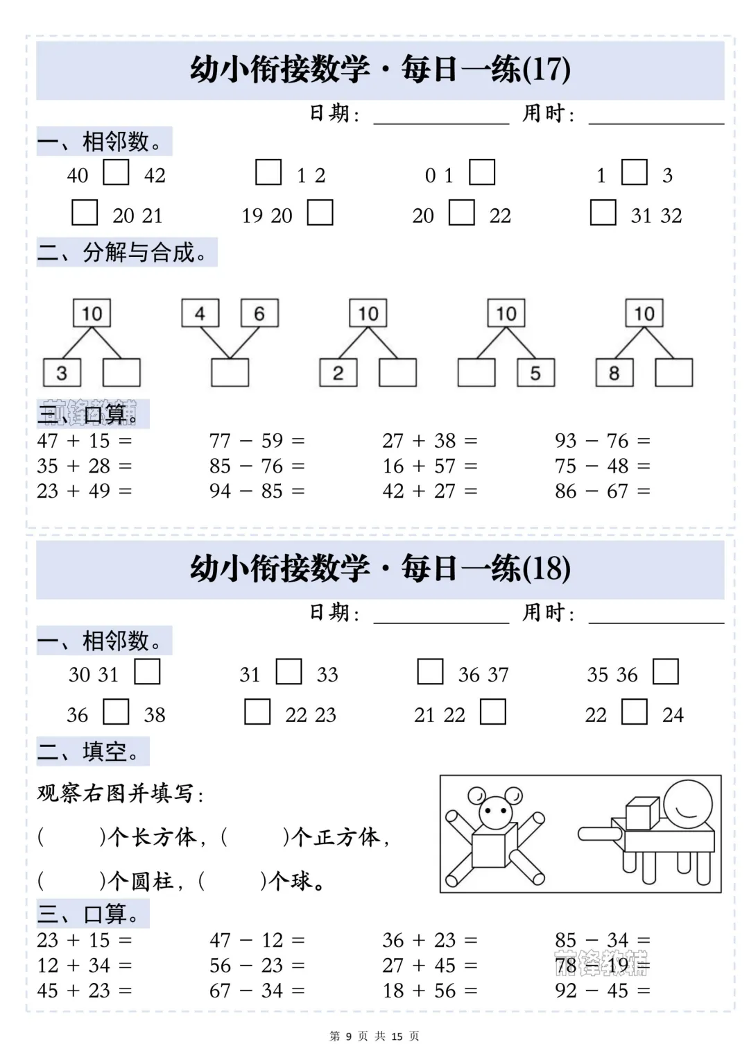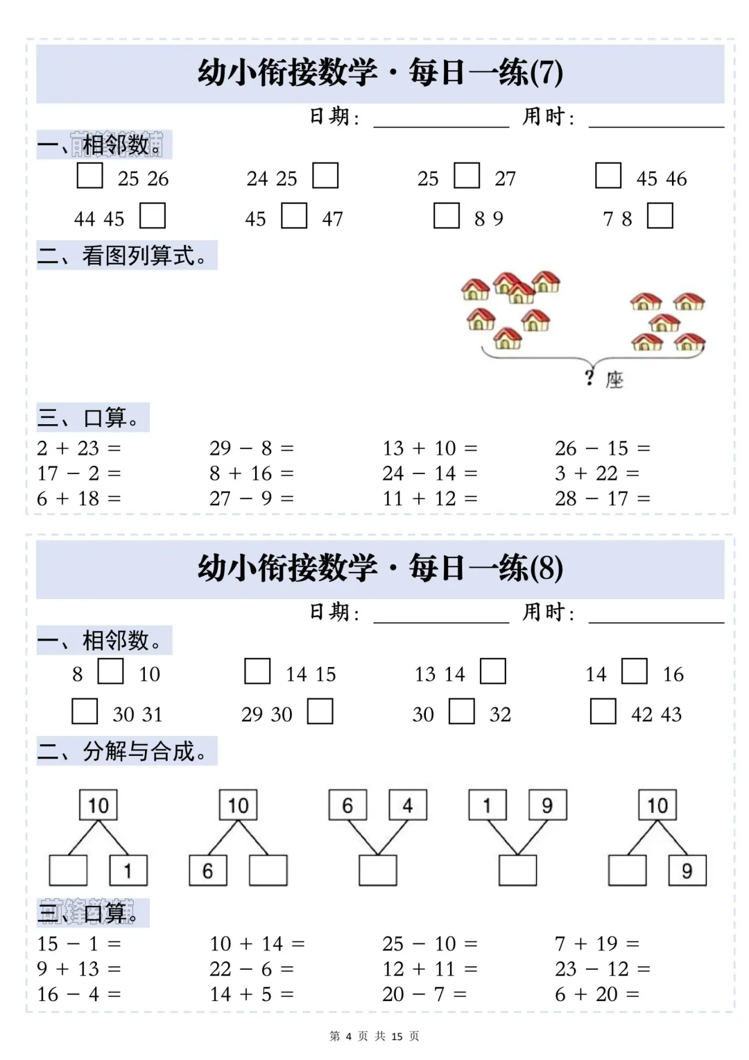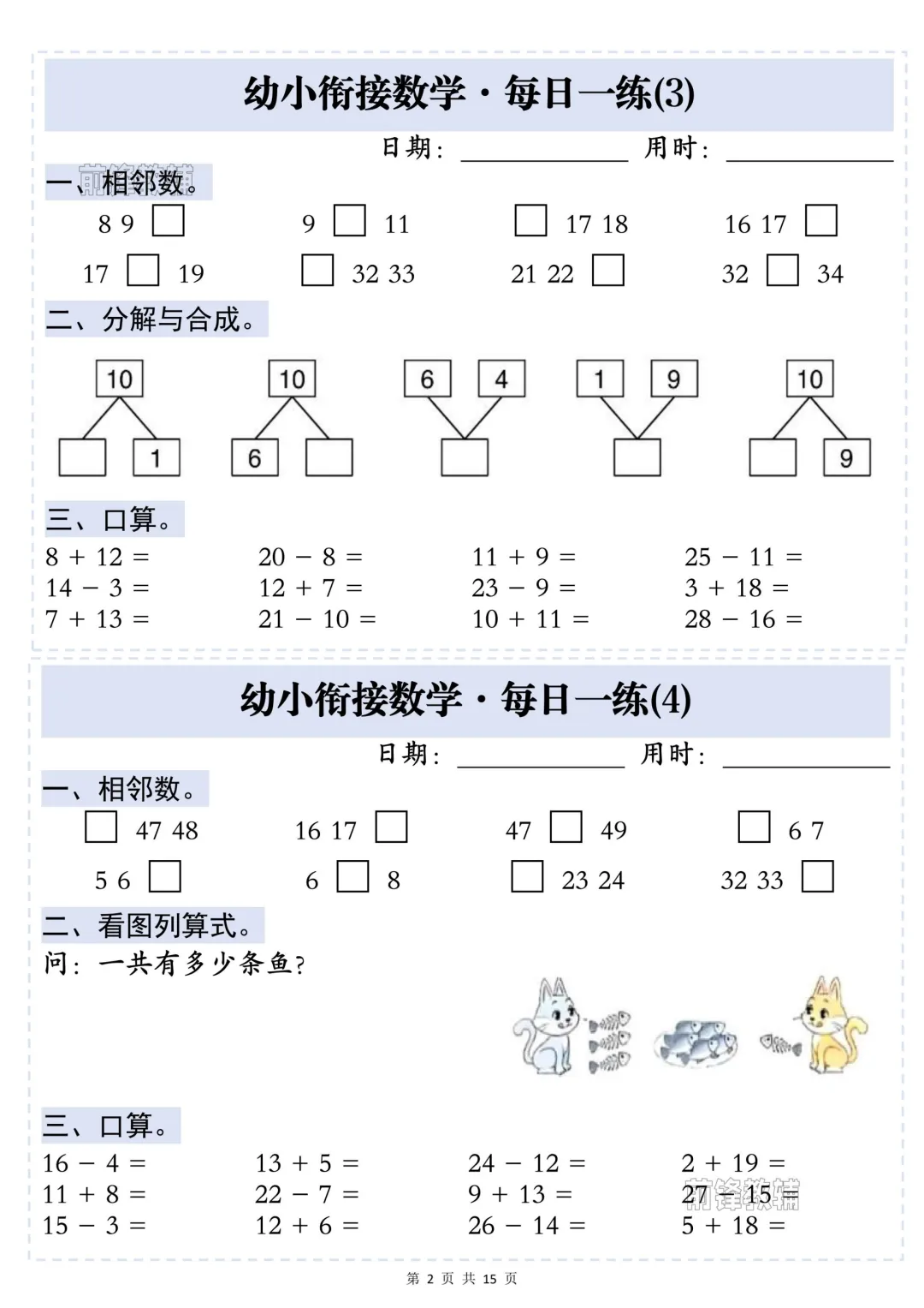 幼小衔接数学·每日一练——相邻数,完整电子版可下载打印.