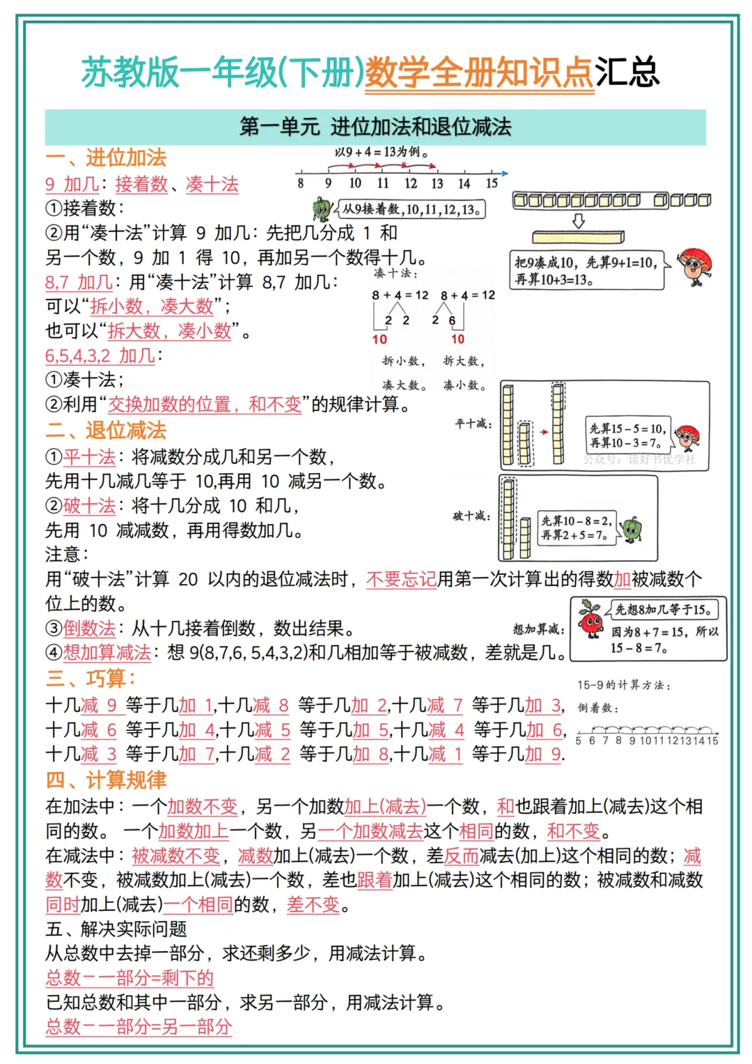 一年级下册数学:苏教版数学知识点汇总,电子版可打印 家长们,↑关↑我领资料 今天老师分享《一年级下册数学:苏教版数学知识点汇总》精选资料给家长,下载电子版打印给孩子记背练习! 提示:文末有完整电子版下载方式 (因篇幅有限,仅显示部分内容) 先加老师好友,方便接收完整资料 若已是好友(同头像),就不要重复加!(家长多,若没及时回复,请耐心等待) 每天150位+家长在领取!