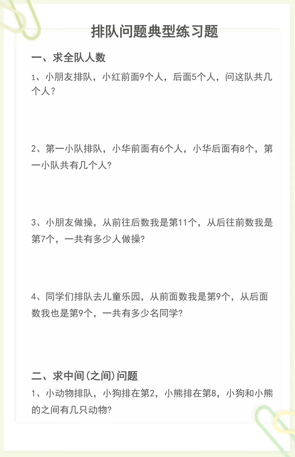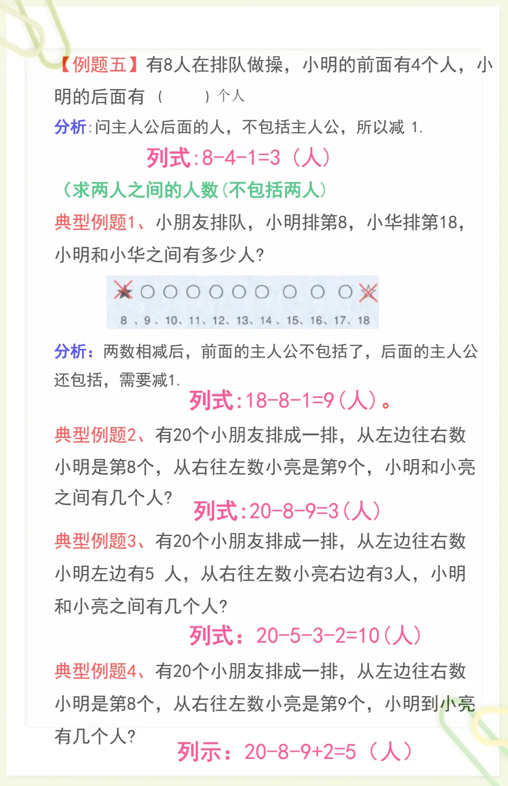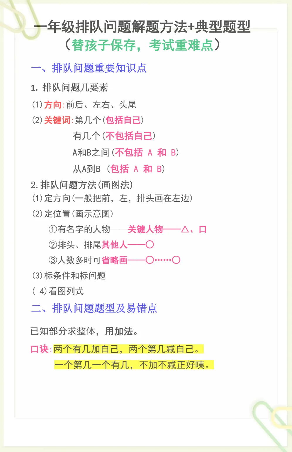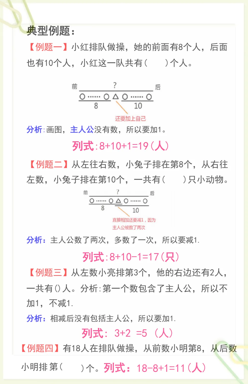 一年级数学排队问题解题方法+典型题型,电子版可打印