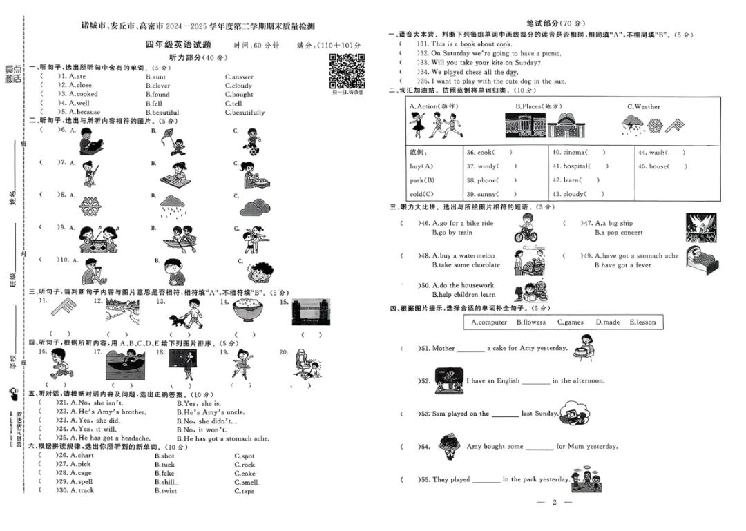 《亮点激活山东期末真卷》2026春外研版英语34年级下册丨pdf,可下载打印