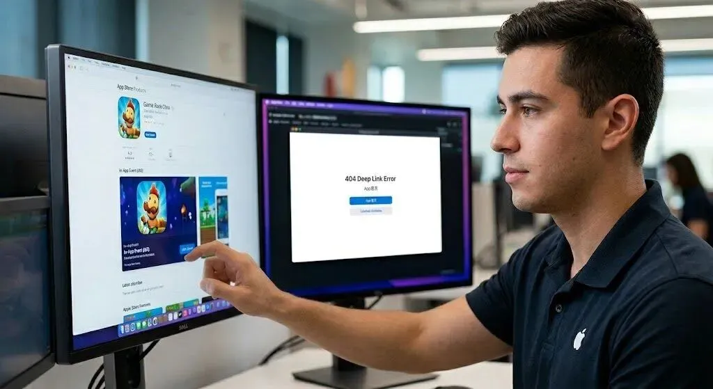 : 苹果强制要求 IAE 必须配置 Event Deep Link。即用户在 App Store 点击活动卡片打开游戏时,游戏必须能直接跳转到该活动所在的特定界面,而不是冷冰冰的首页。如果您的技术团队没有正确实现这个深度链接机制,或者链接跳转报错、白屏,审核员在测试环境点开发现体验断裂,将直接触发质量不合格拒审。 - 时间戳与地域配置的“低级失误”