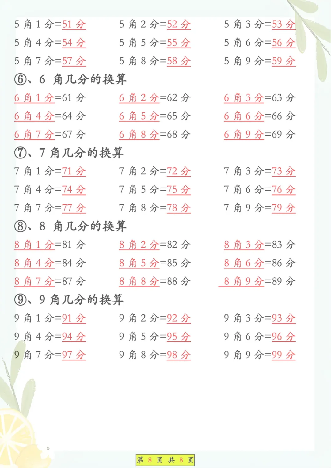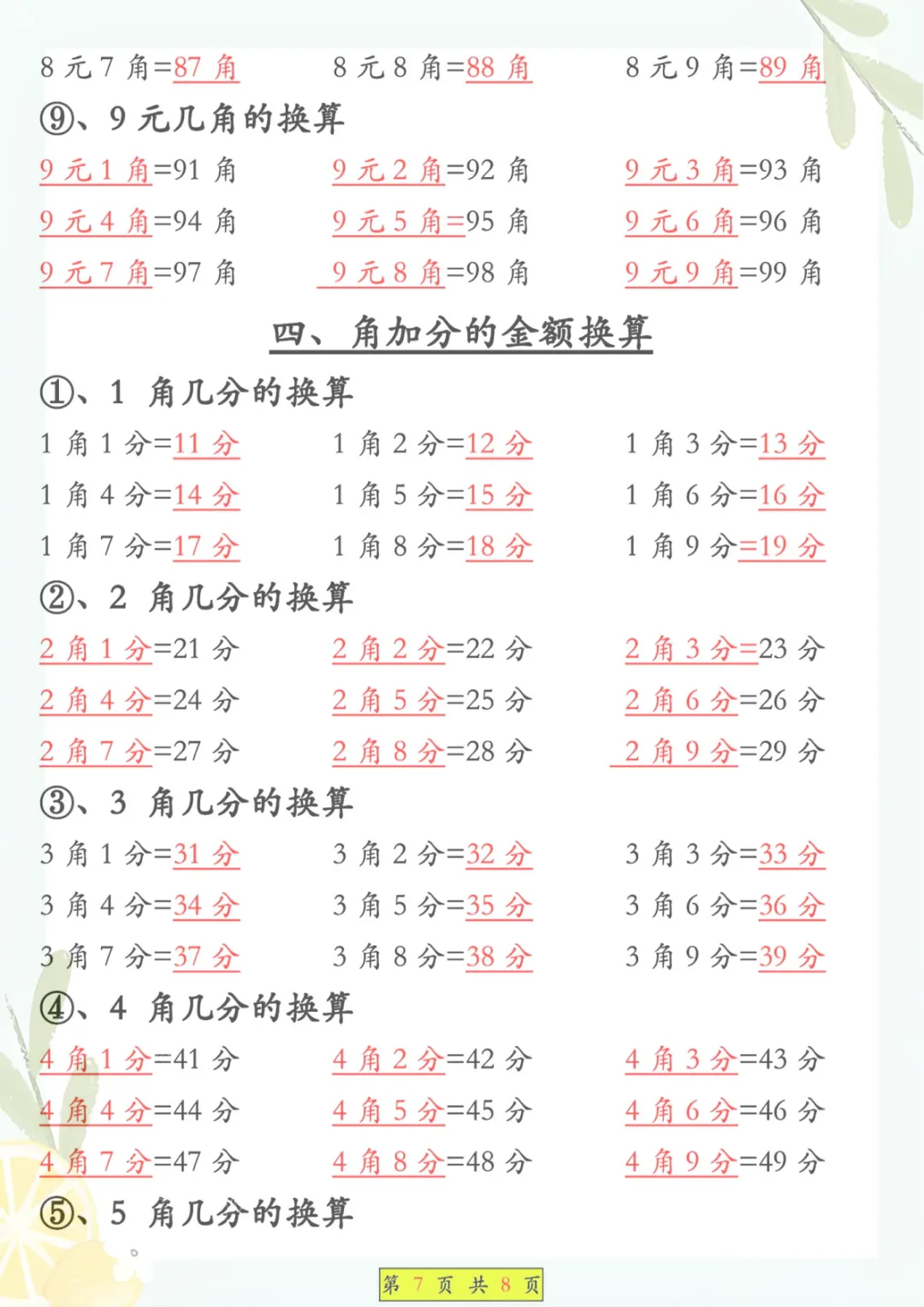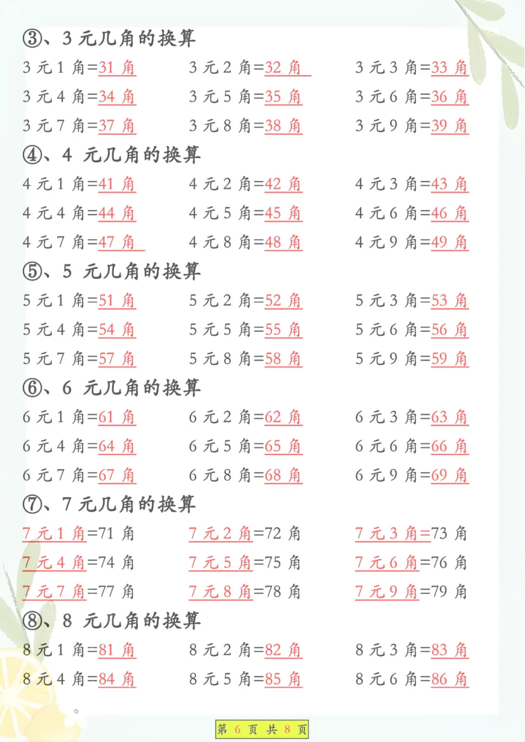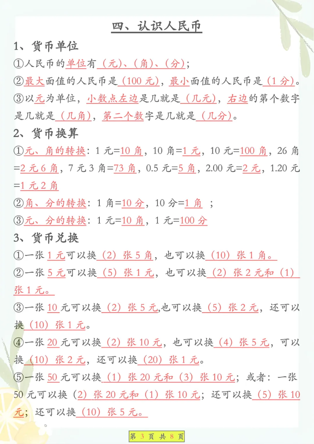 一年级下册数学《必背知识点汇总》,共8页,电子版可下载可打印,这份资料围绕一年级下册数学学习内容整理归纳,涵盖多个核心知识点与专项训练内容,适合孩子课内巩固、课后复习和考前查漏补缺,帮助孩子把基础概念和重点内容记得更牢、学得更扎实。需要的家长可以抓紧保存打印出来,让孩子及时看一看、练一练。