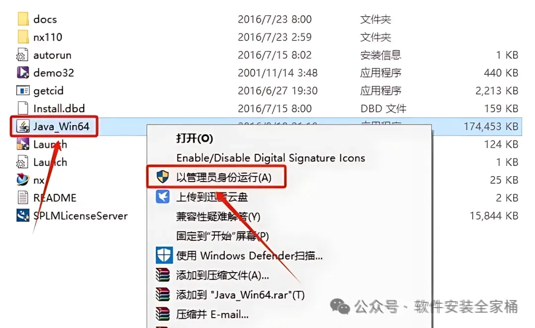 4. 鼠标右击【Java_Win64】虚拟机,选择【以管理员身份运行】。