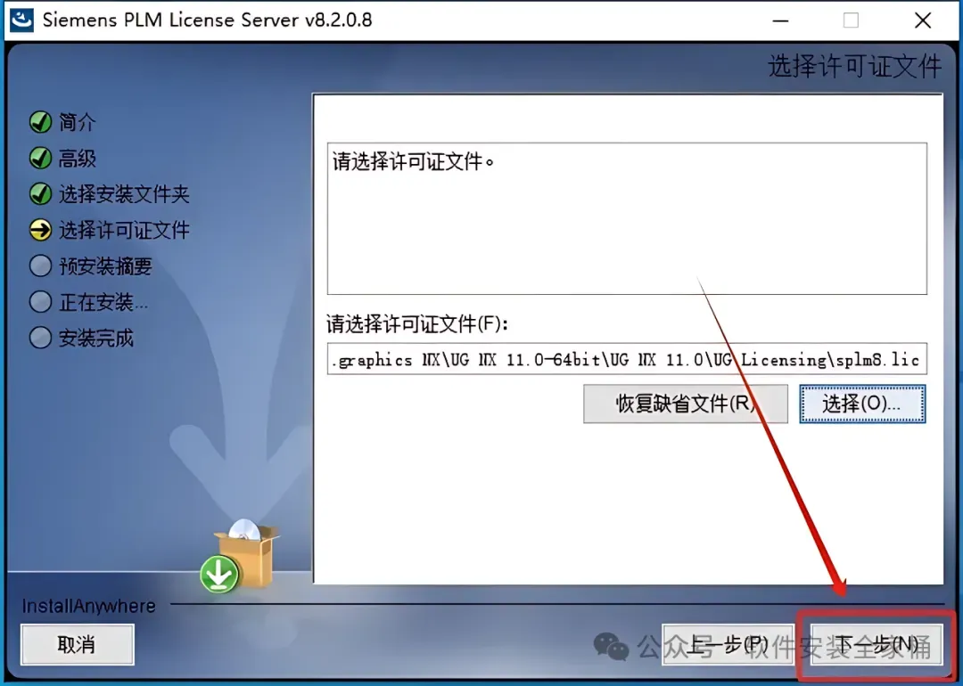 23. 点击【选择】选择之前更改的splm8许可证文件。