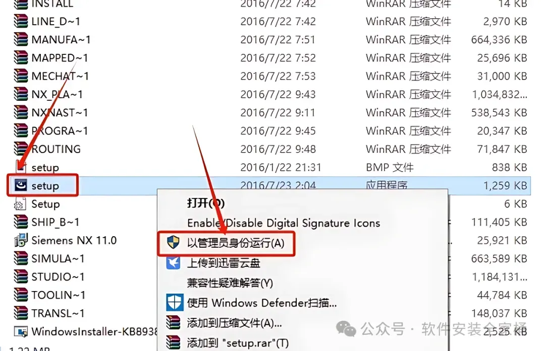 33. 鼠标右击 【setup 】安装程序,选择【以管理员身份运行】 。