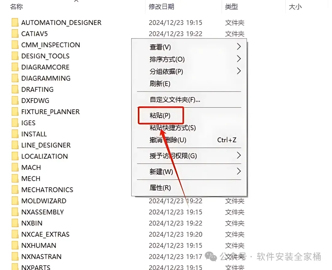 46. 打开E盘– 【UG 11.0】文件夹 。 在打开的文件夹空白处, 鼠标右击【粘贴】之前复制的文件。