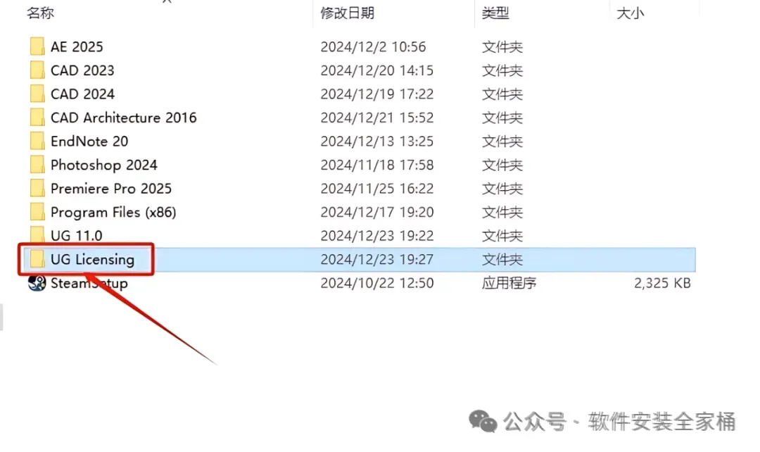 48. 继续返回到解压的【UG NX 11.0】文件夹中,然后打开【UG Licensing】文件夹。