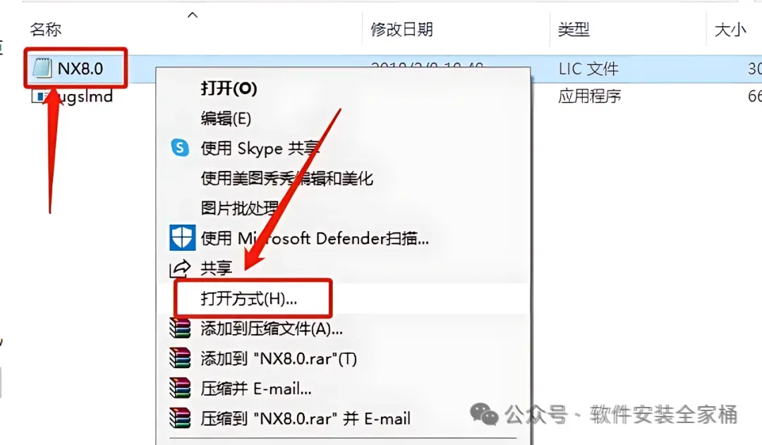 4.选中【NX8.0】后,鼠标右击选择【打开方式】。
