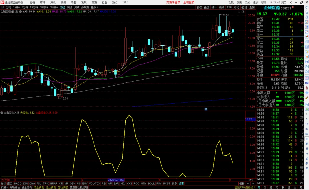 大资金: IF(VAR4>=0,VAR4,0),COLOR00FFFF,LINETHICK2;