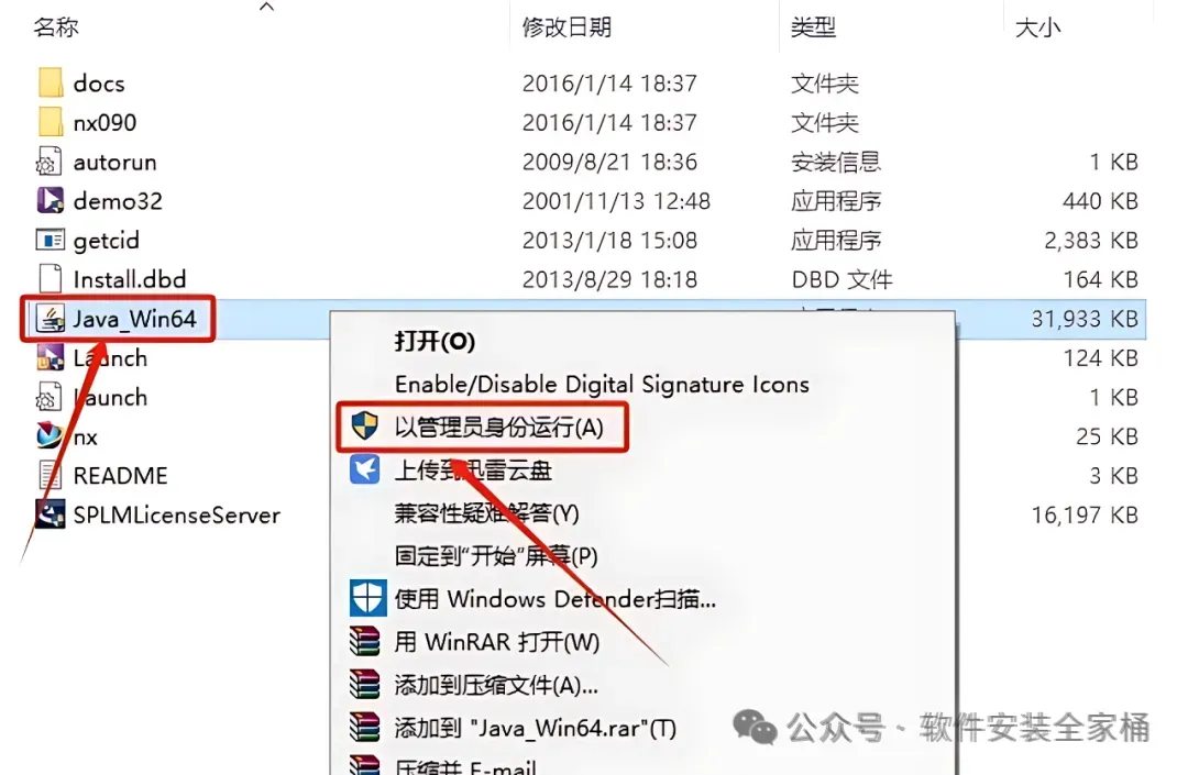 4.鼠标右击【Java_Win64】,选择【以管理员身份运行】。