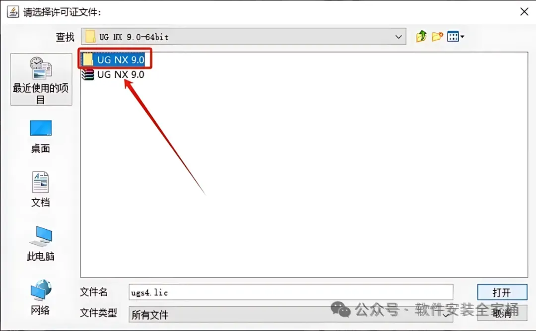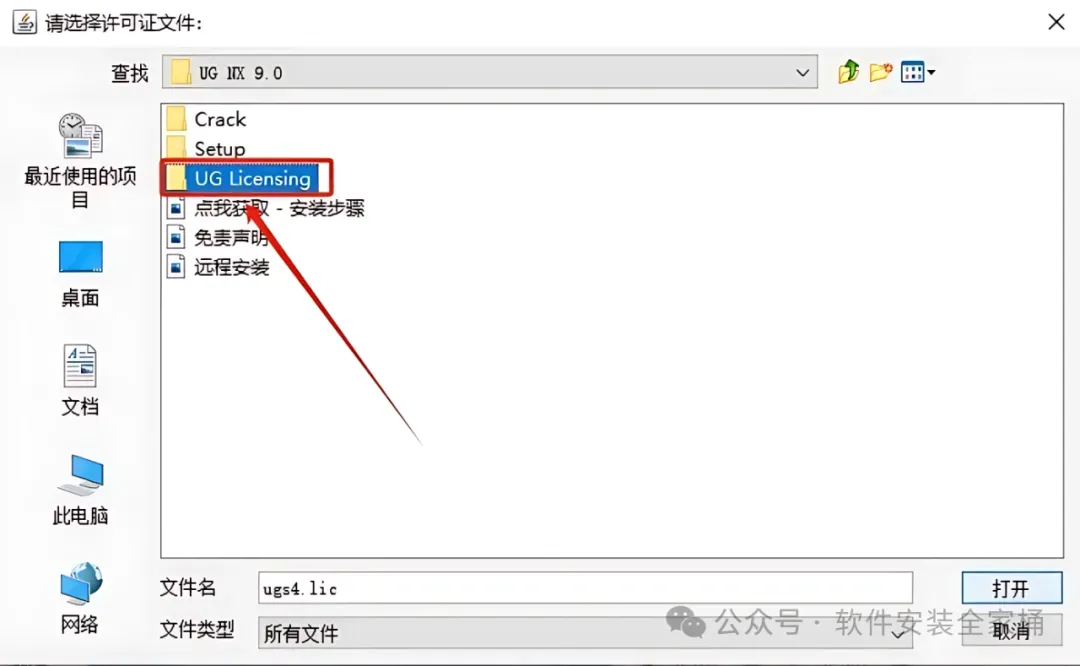 11.返回到解压的【UG NX 9.0】文件夹中,然后打开【UG Licensing】文件夹。