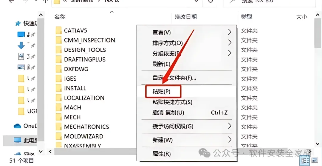 47.打开D盘–【Program Files】–【Siemens】–【NX 9.0】文件夹。在打开的文件夹空白处,鼠标右击【粘贴】之前复制文件。