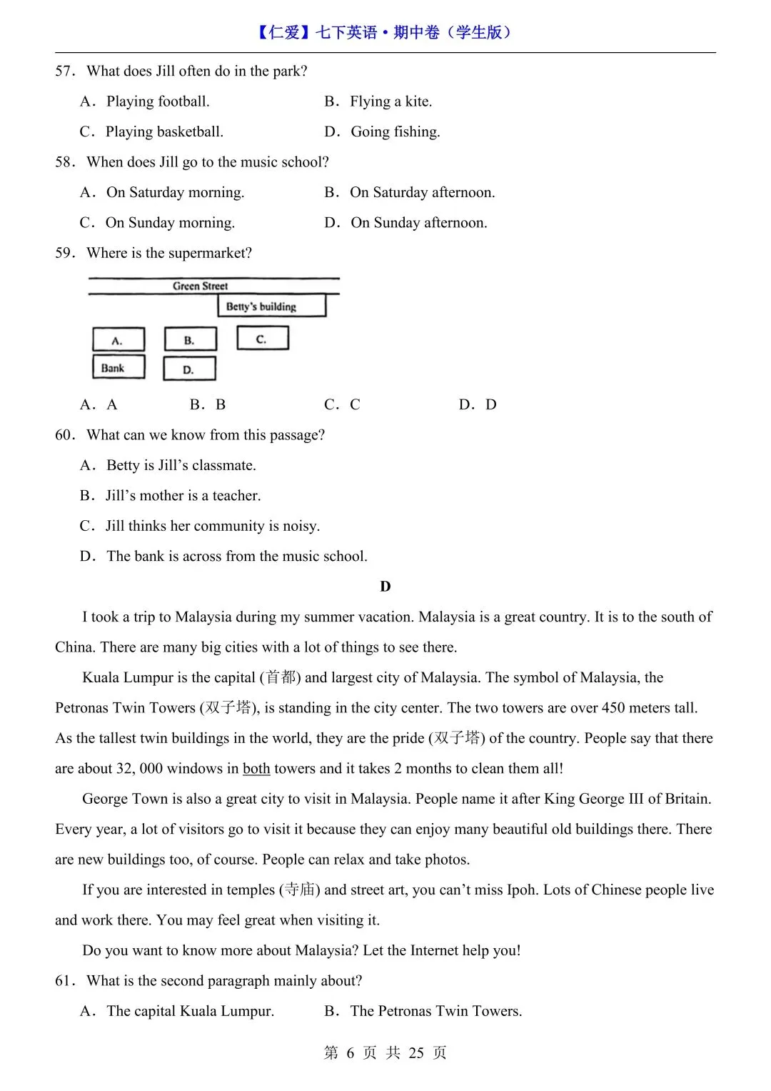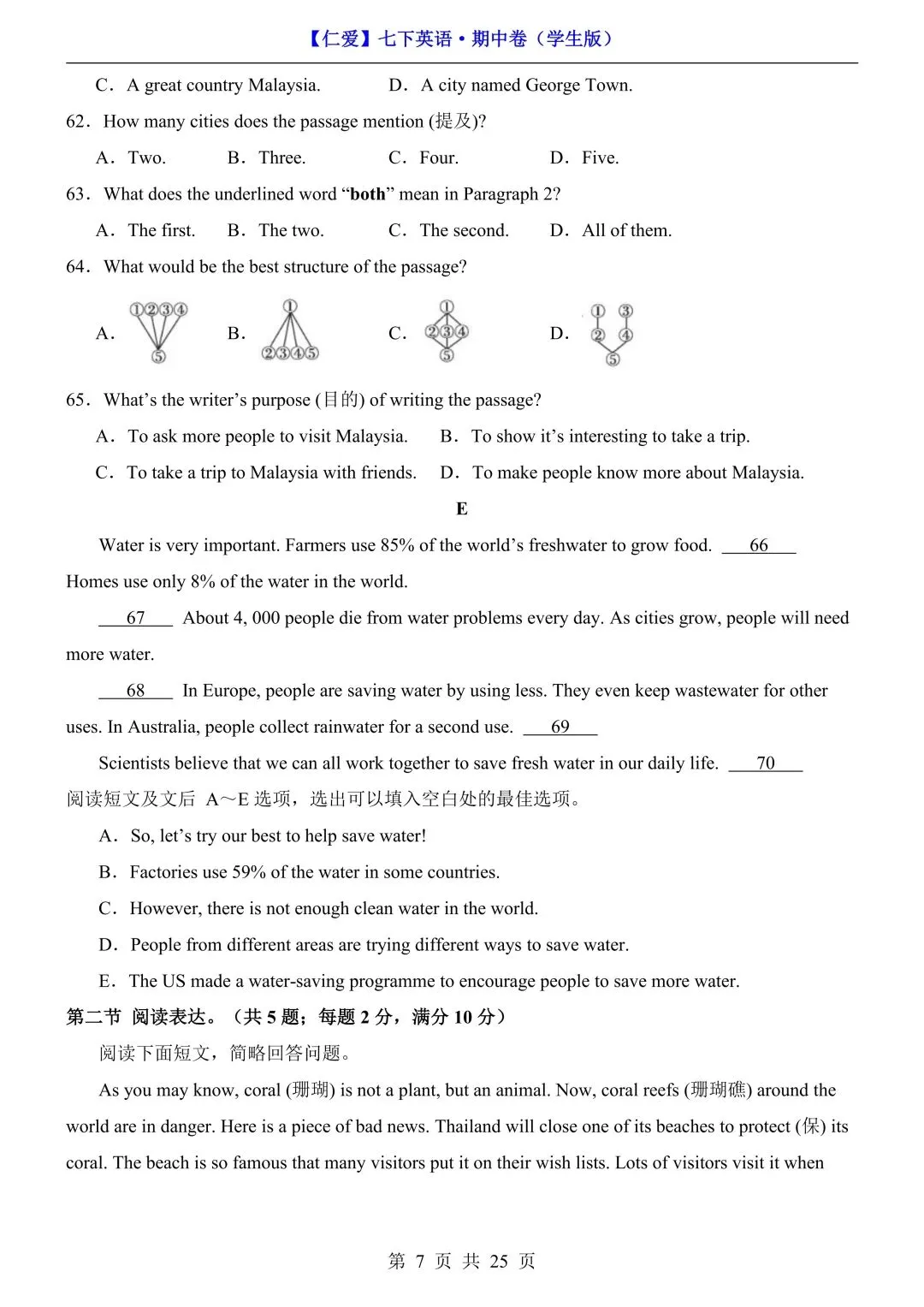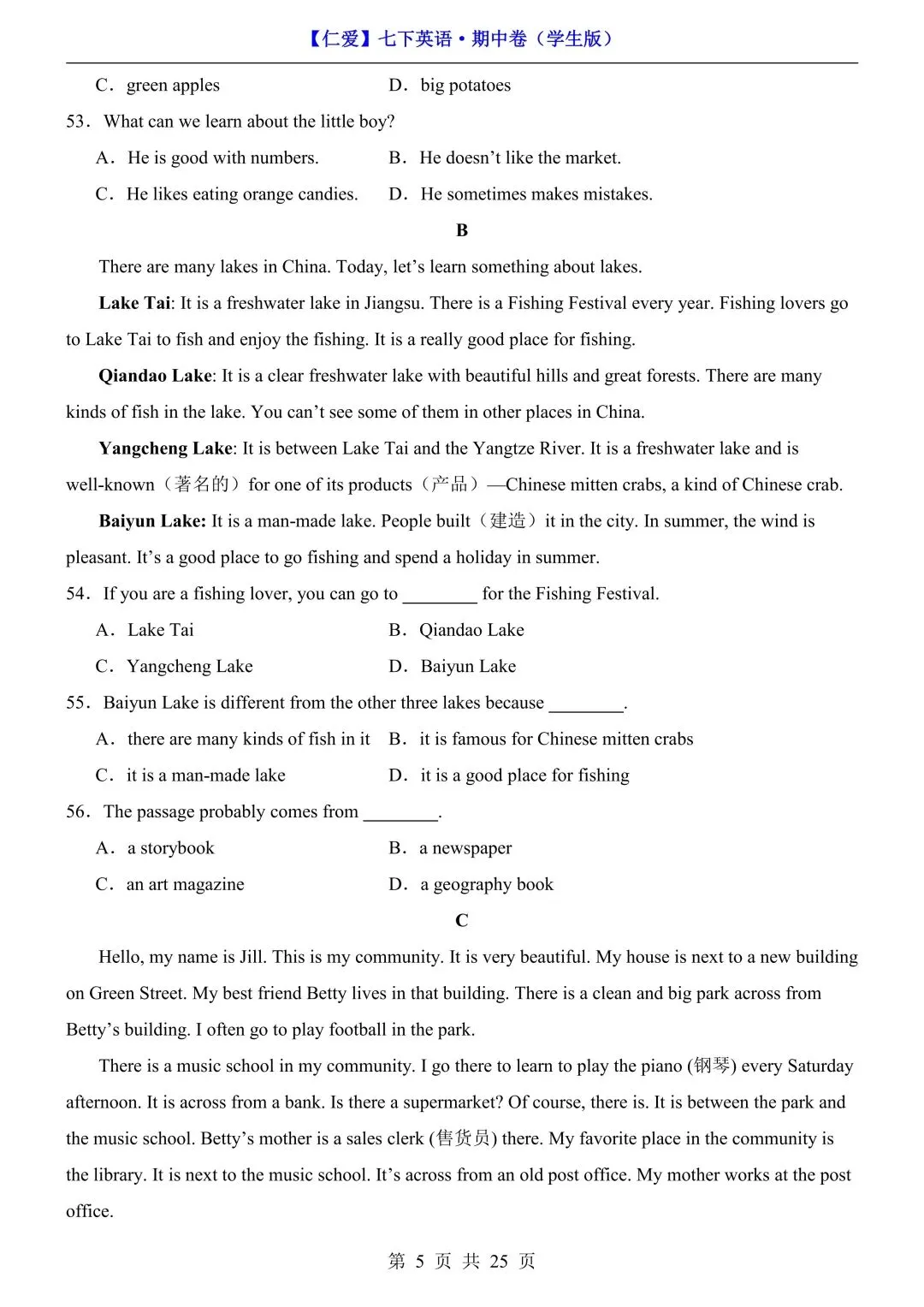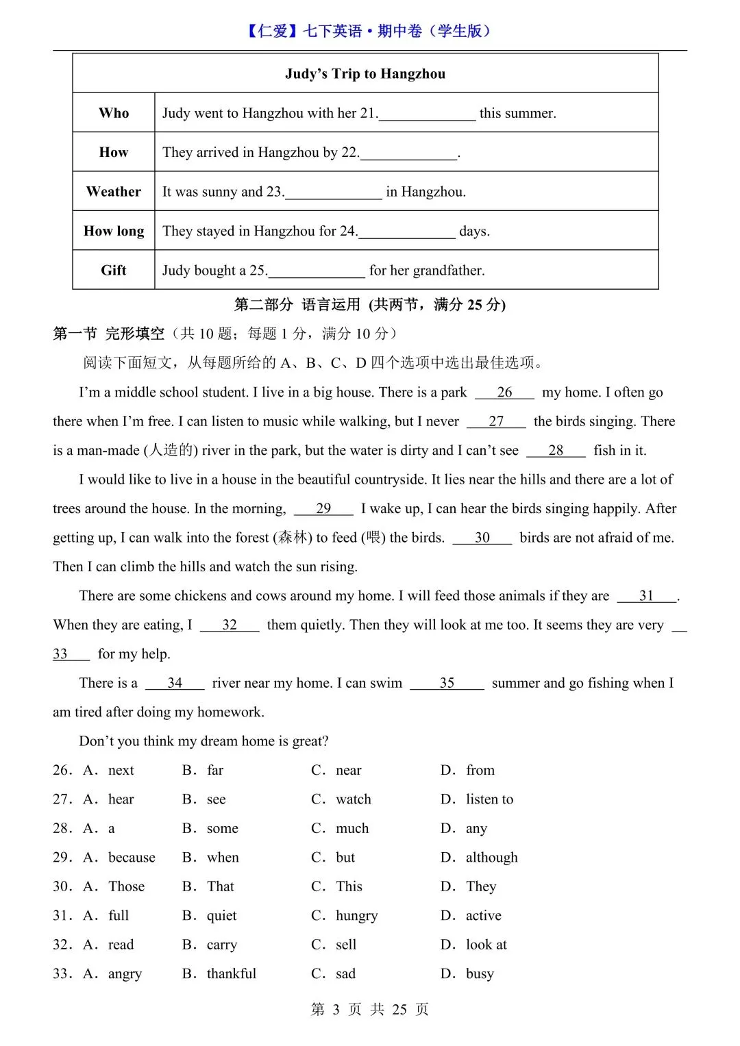 26年春七年级初一下册仁爱版英语期中模拟测试卷【附答案+答题卡】丨高清电子版可打印(415)