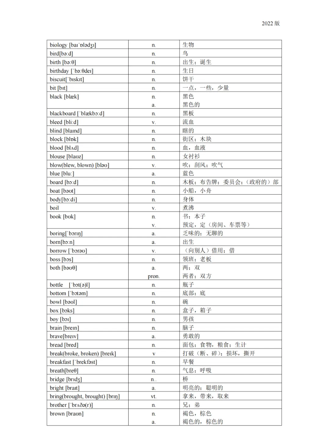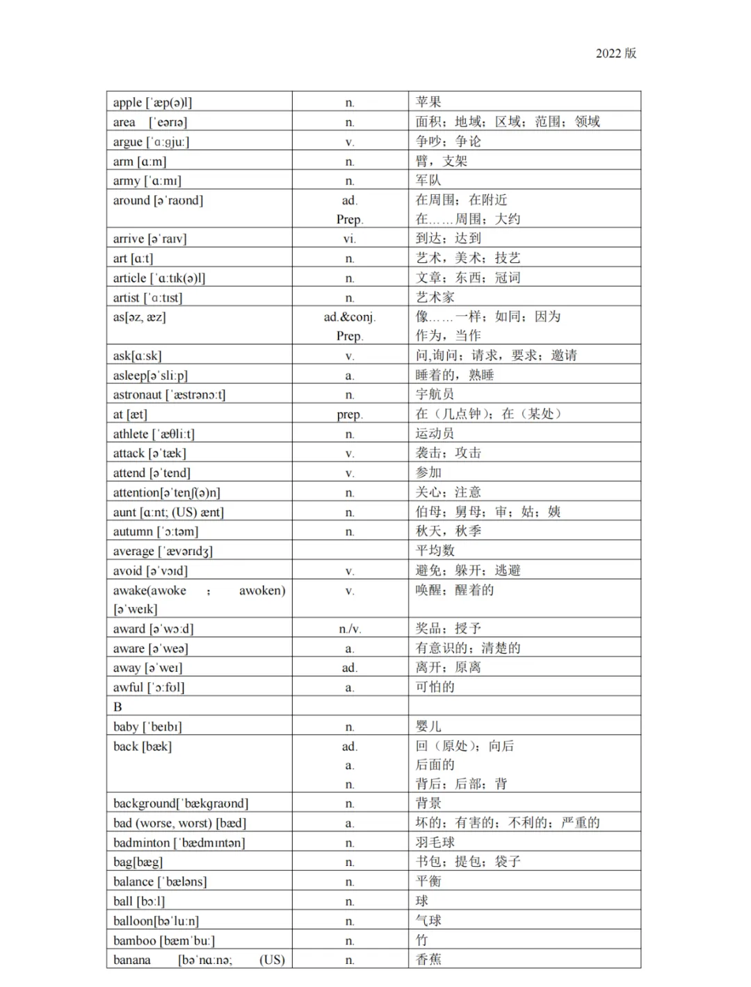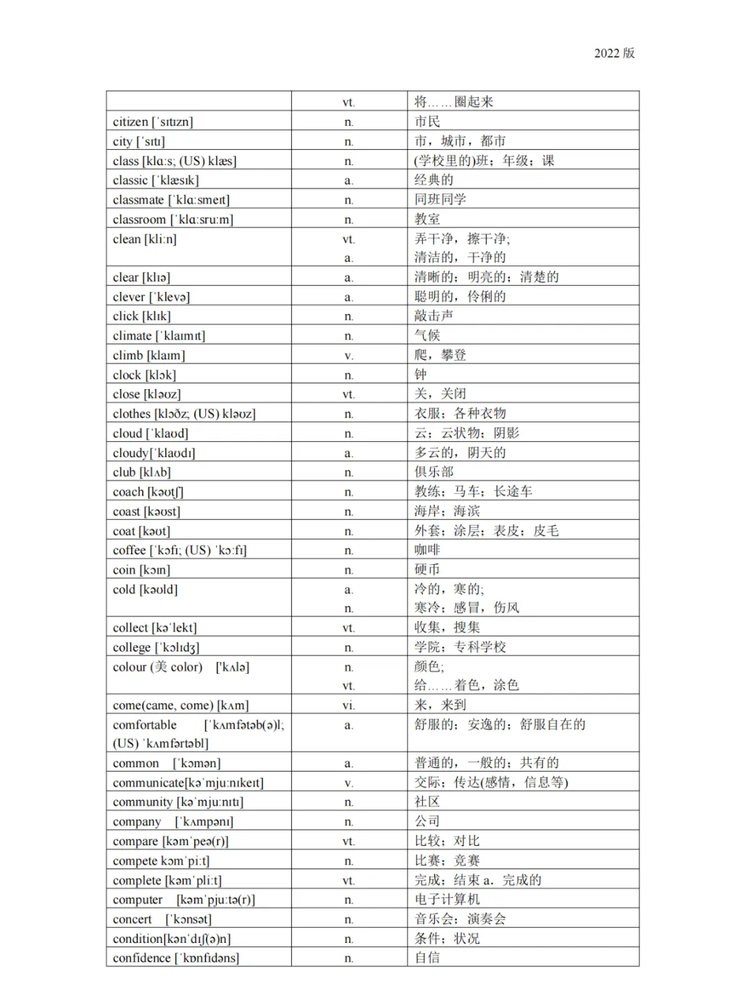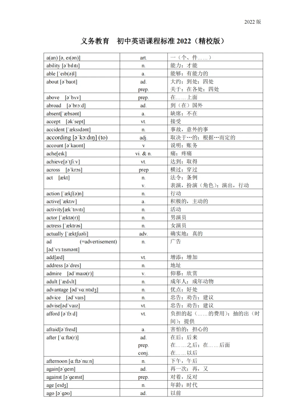 义务教育 初中英语课程标准2022版词汇(背诵版)