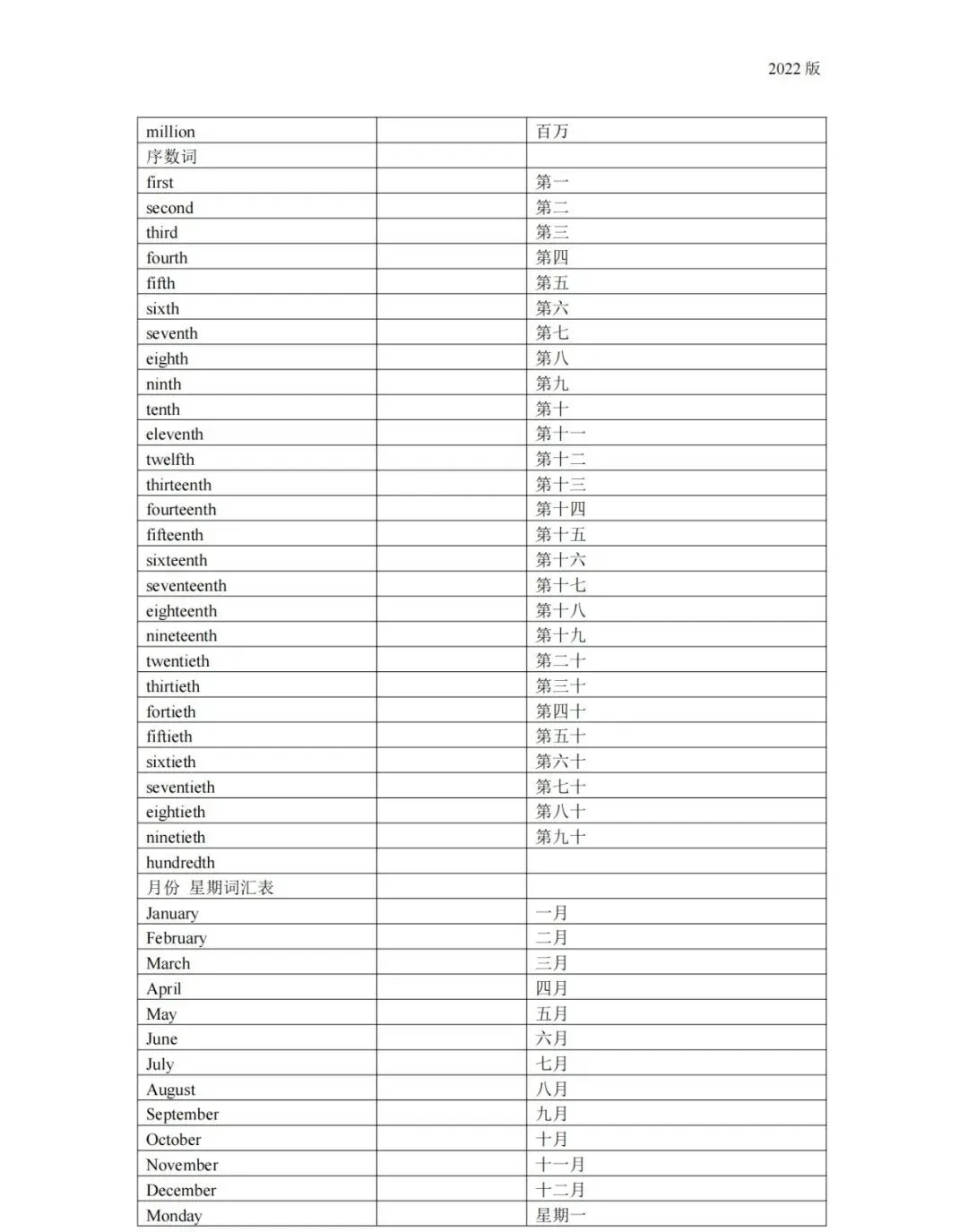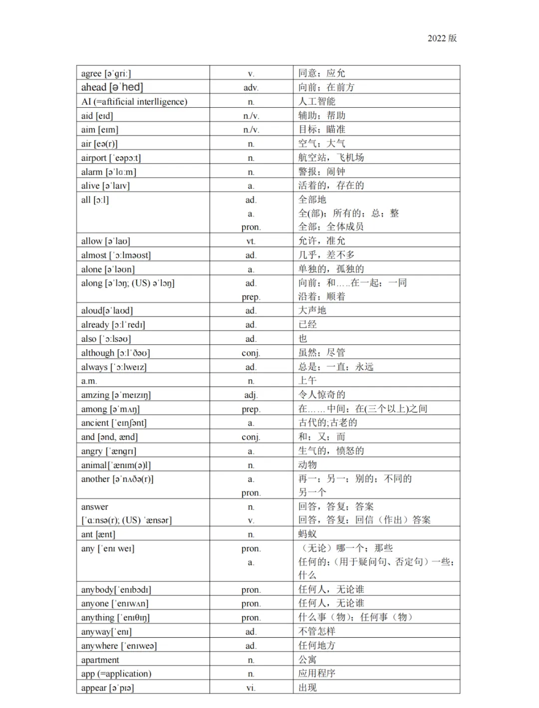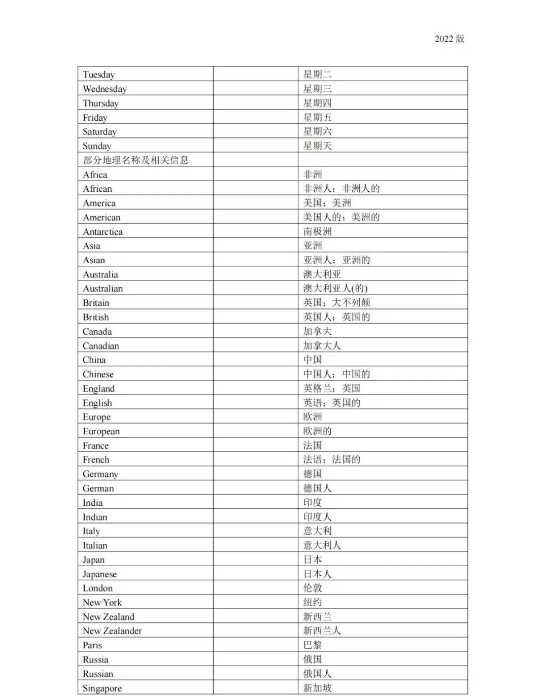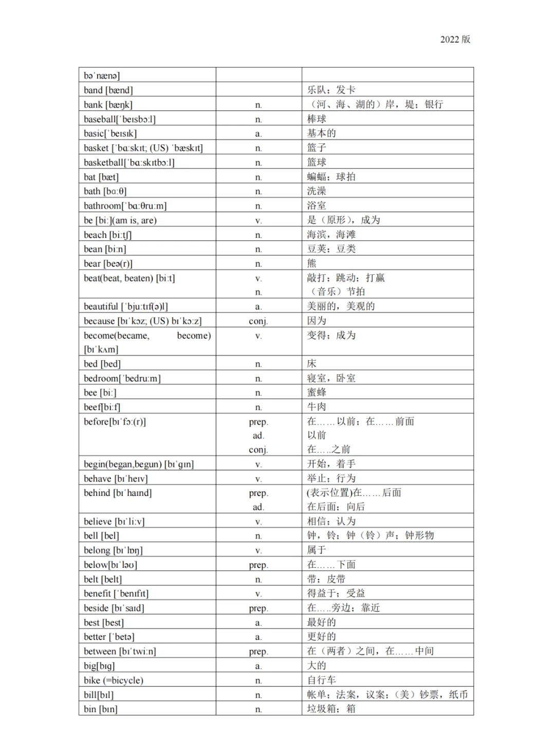 义务教育 初中英语课程标准2022版词汇(背诵版)