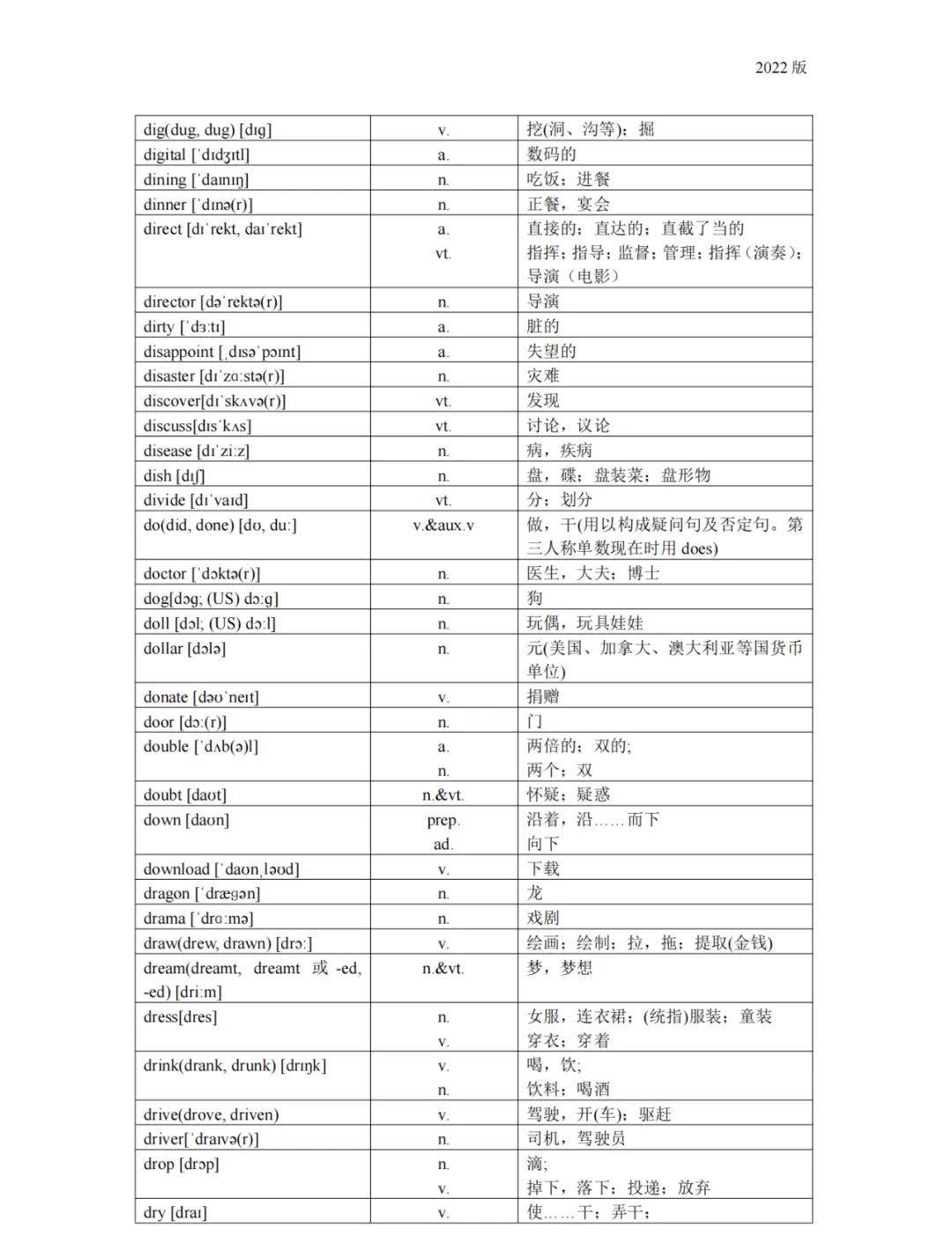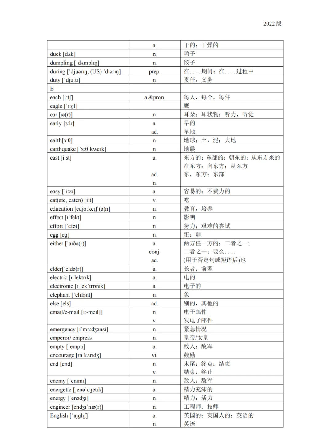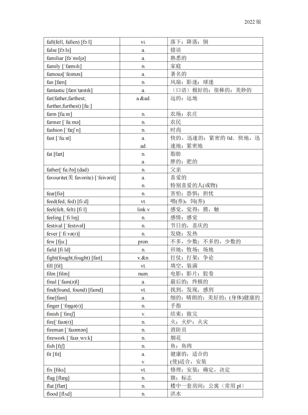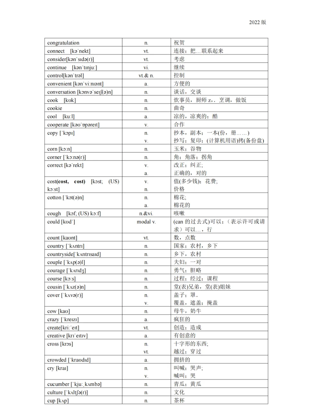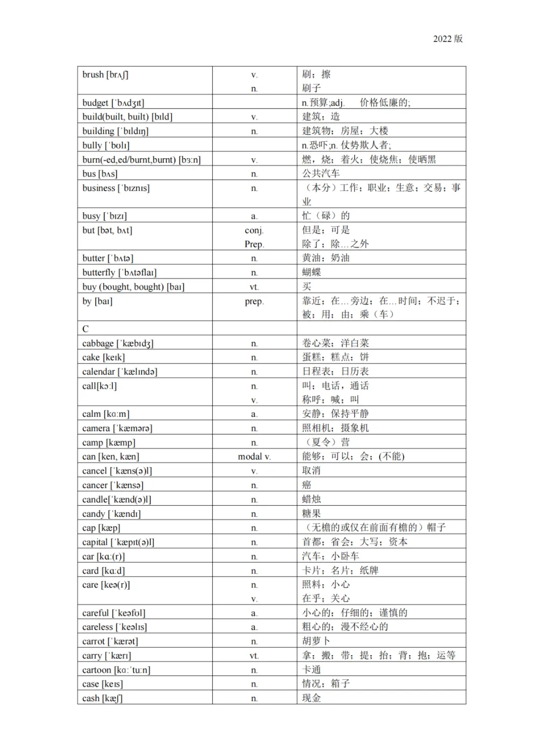 义务教育 初中英语课程标准2022版词汇(背诵版)