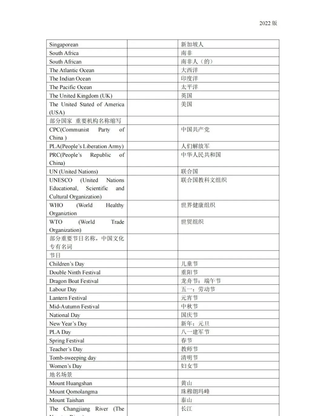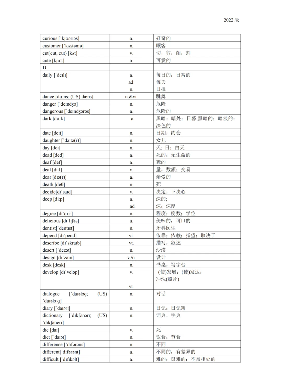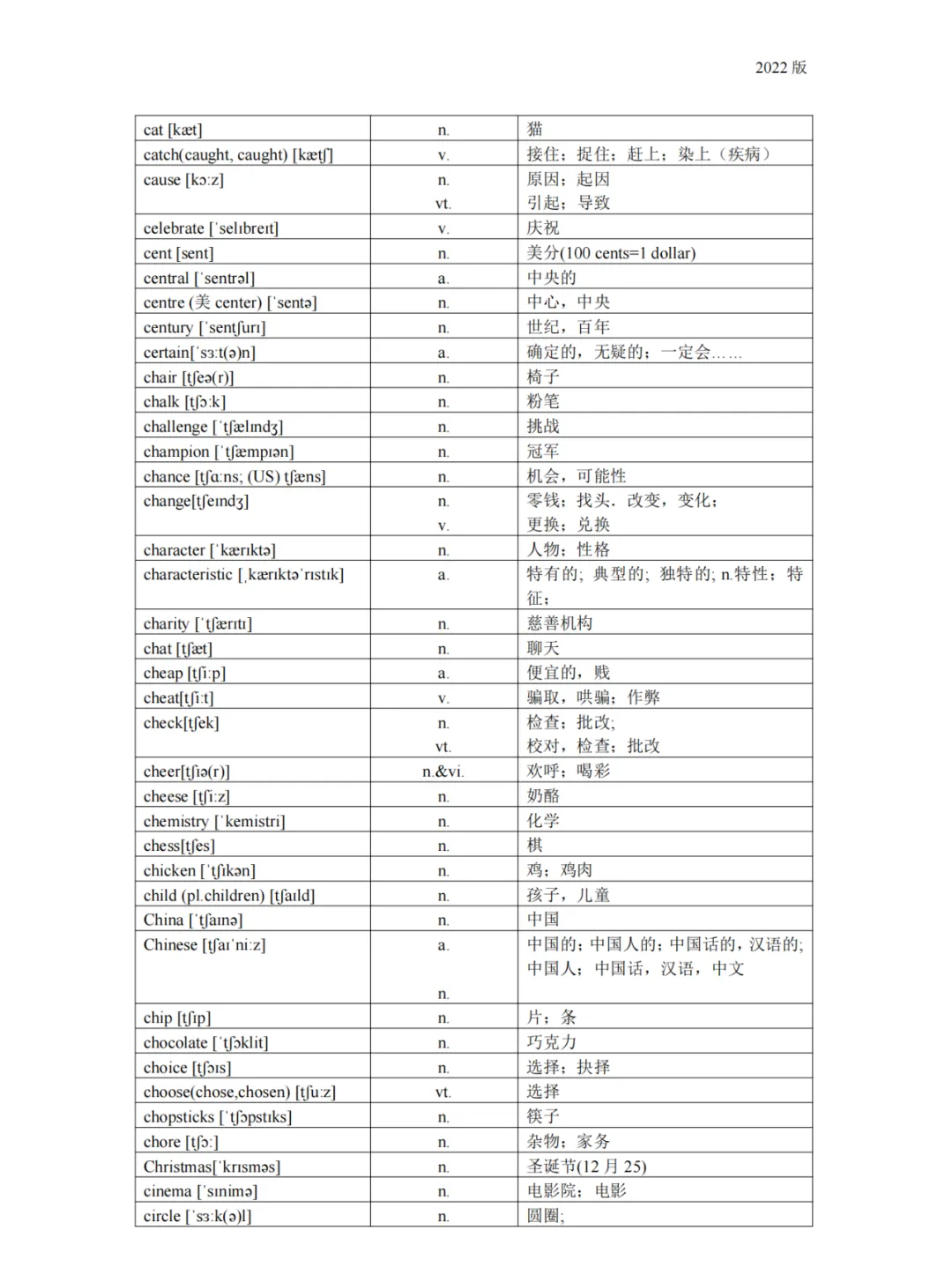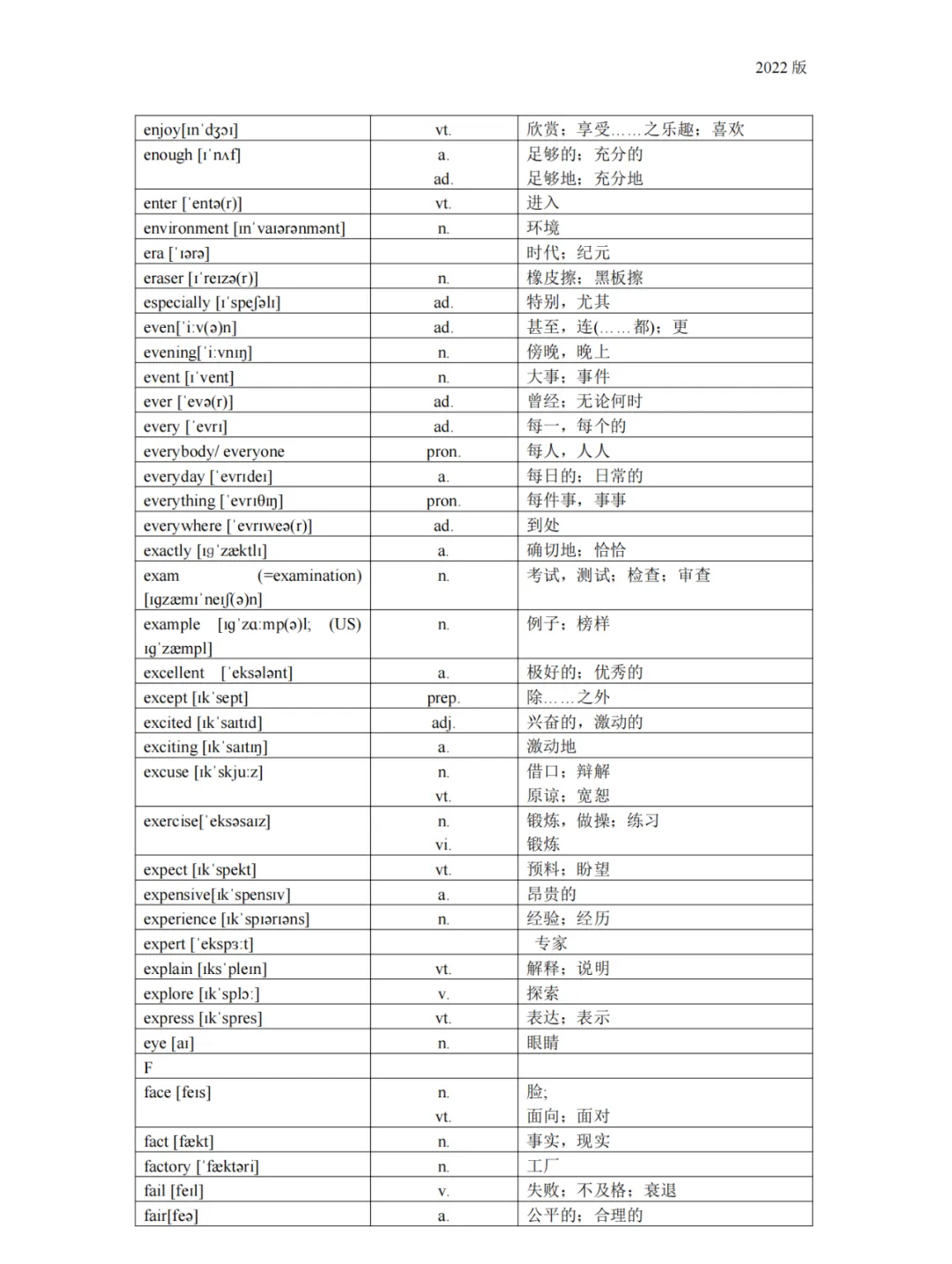 义务教育 初中英语课程标准2022版词汇(背诵版)