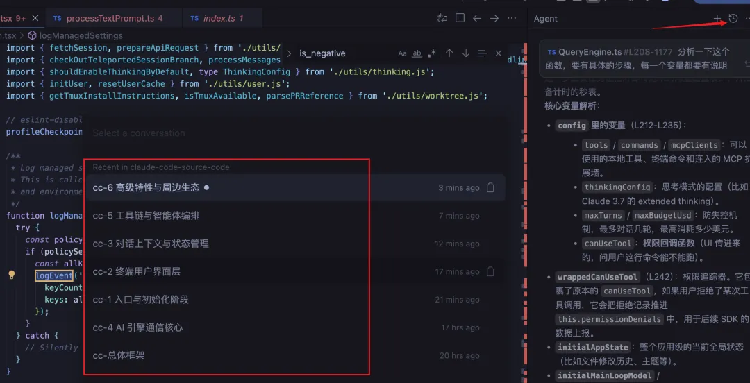 agent 不仅能较好地分析出这一部分的主要功能,也会顺手注意到这些功能分别落在哪些代码文件里。