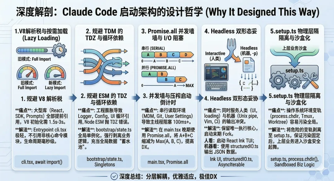 如果我想知道,为什么 Claude Code 在启动阶段要这样设计,同样也可以把这个问题抛给 agent。 它分析完代码之后,通常会给出一个比较完整的解释,甚至还能顺手画出一些挺有意思的图。
