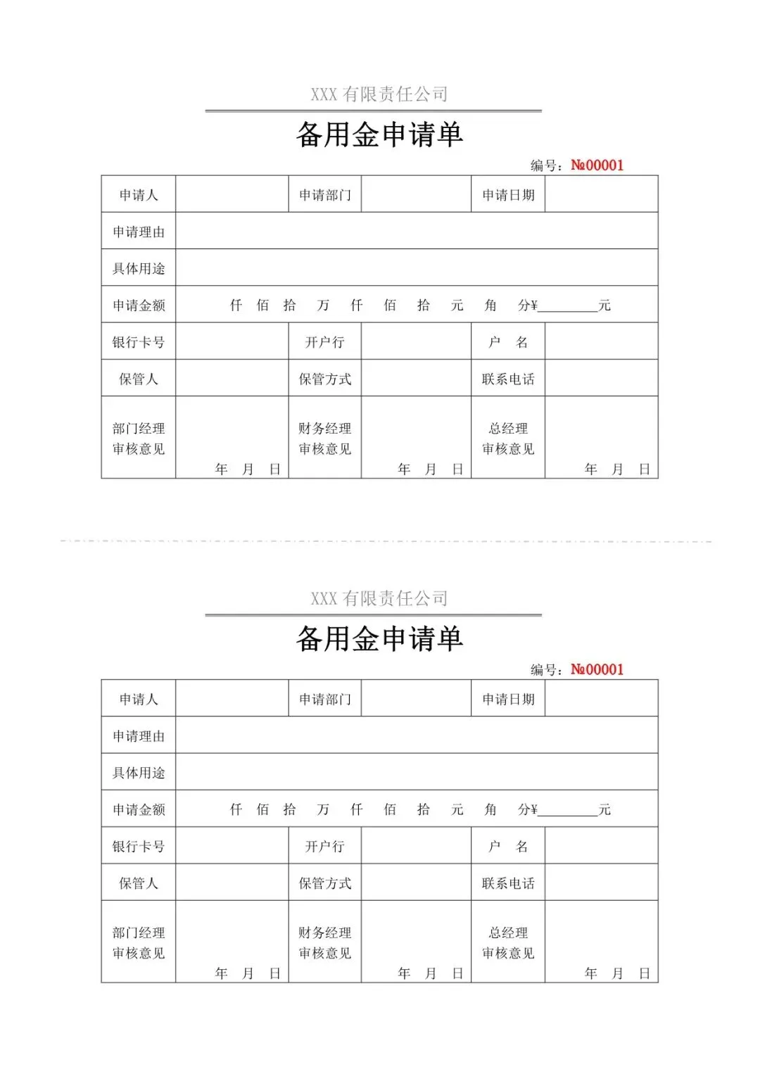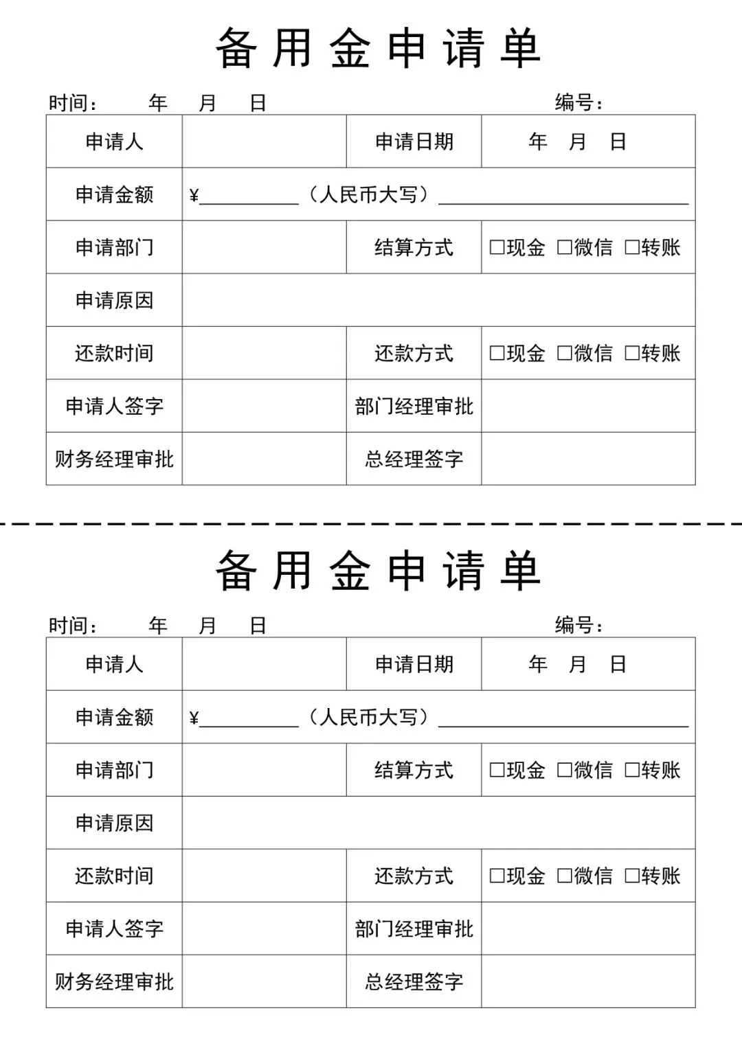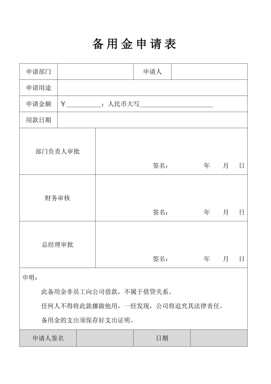 员工备用金借支申请表(word电子版下载!)