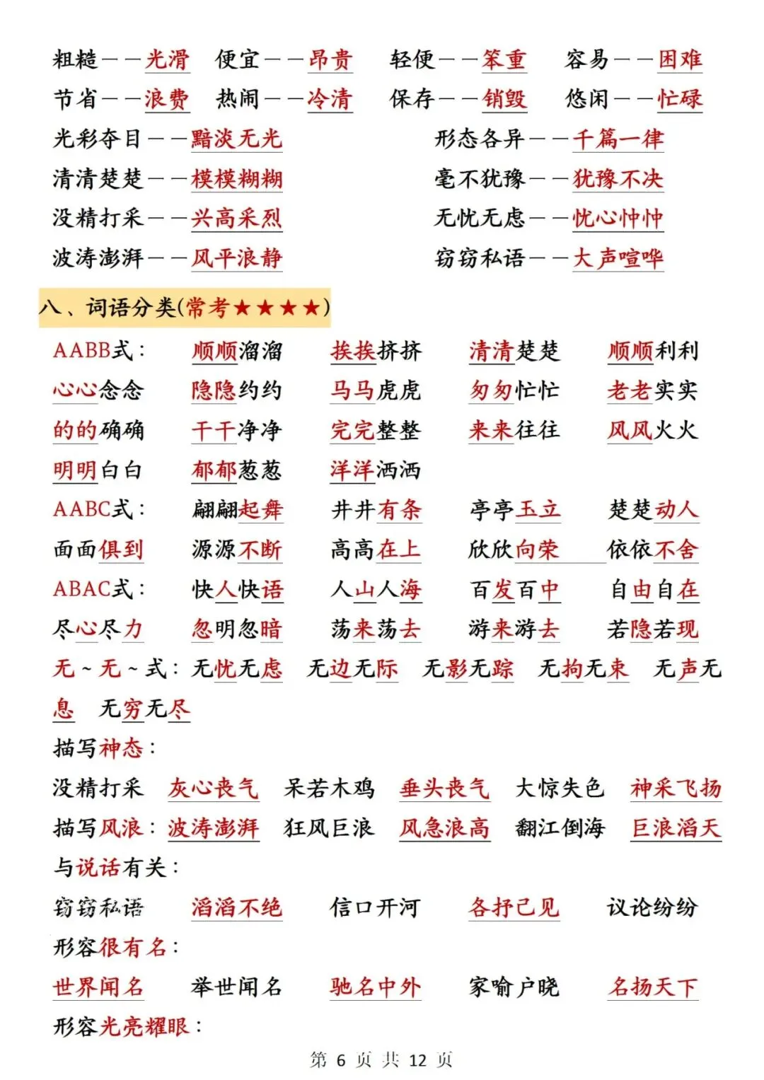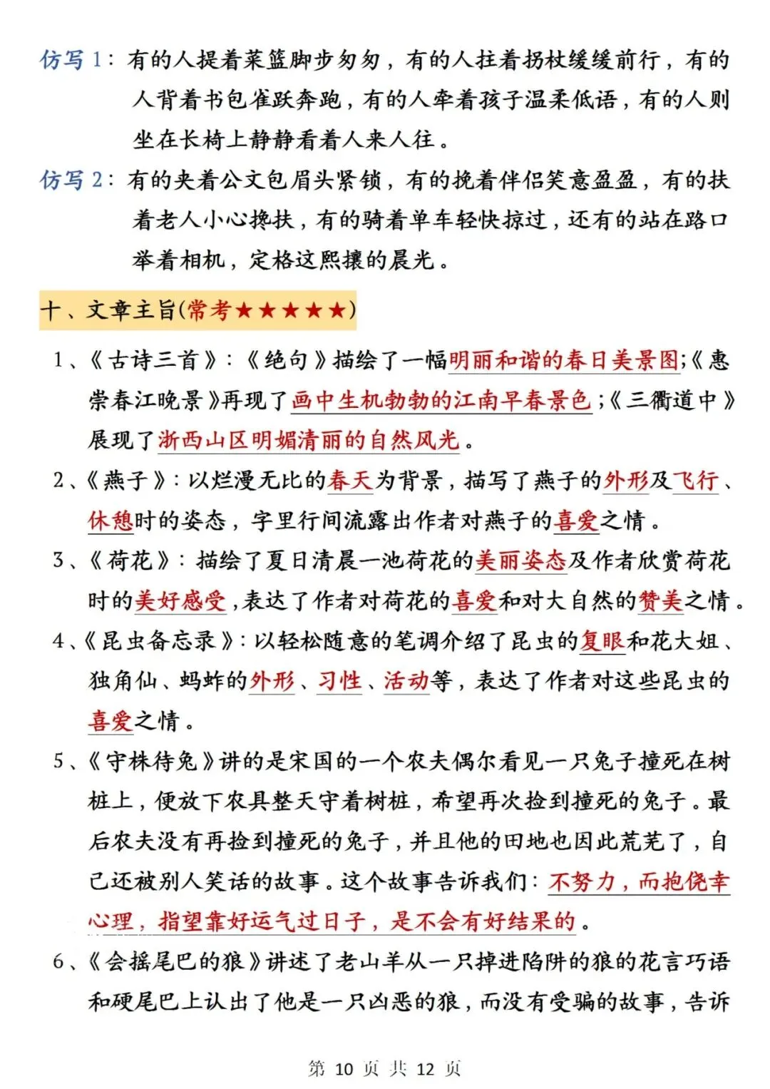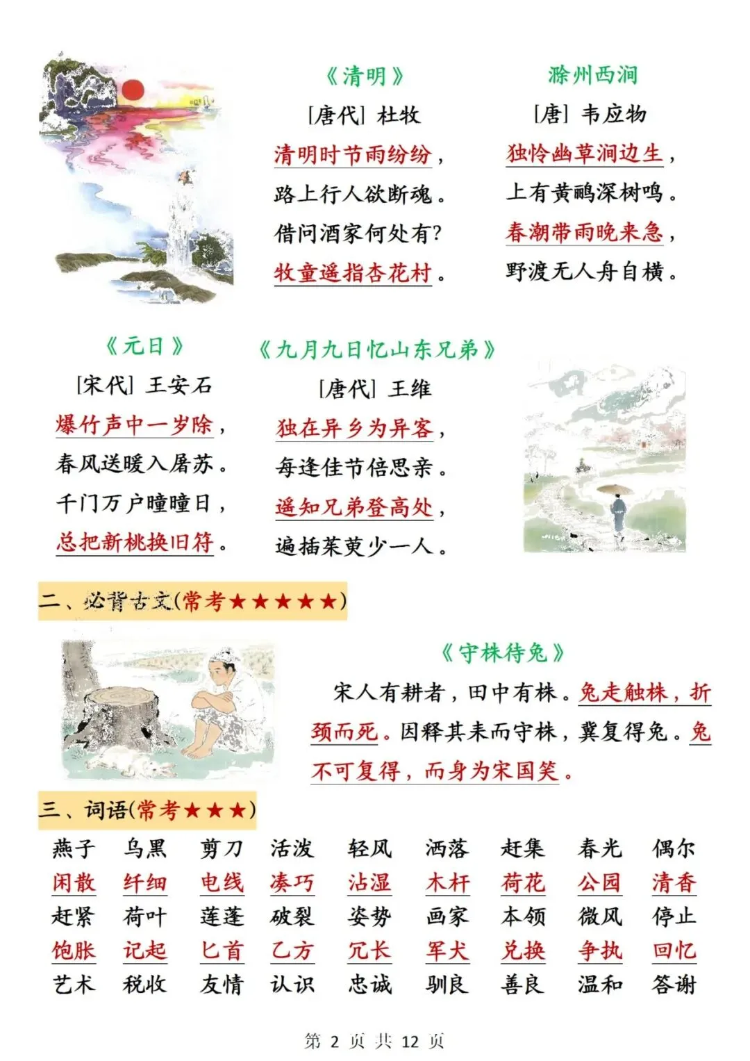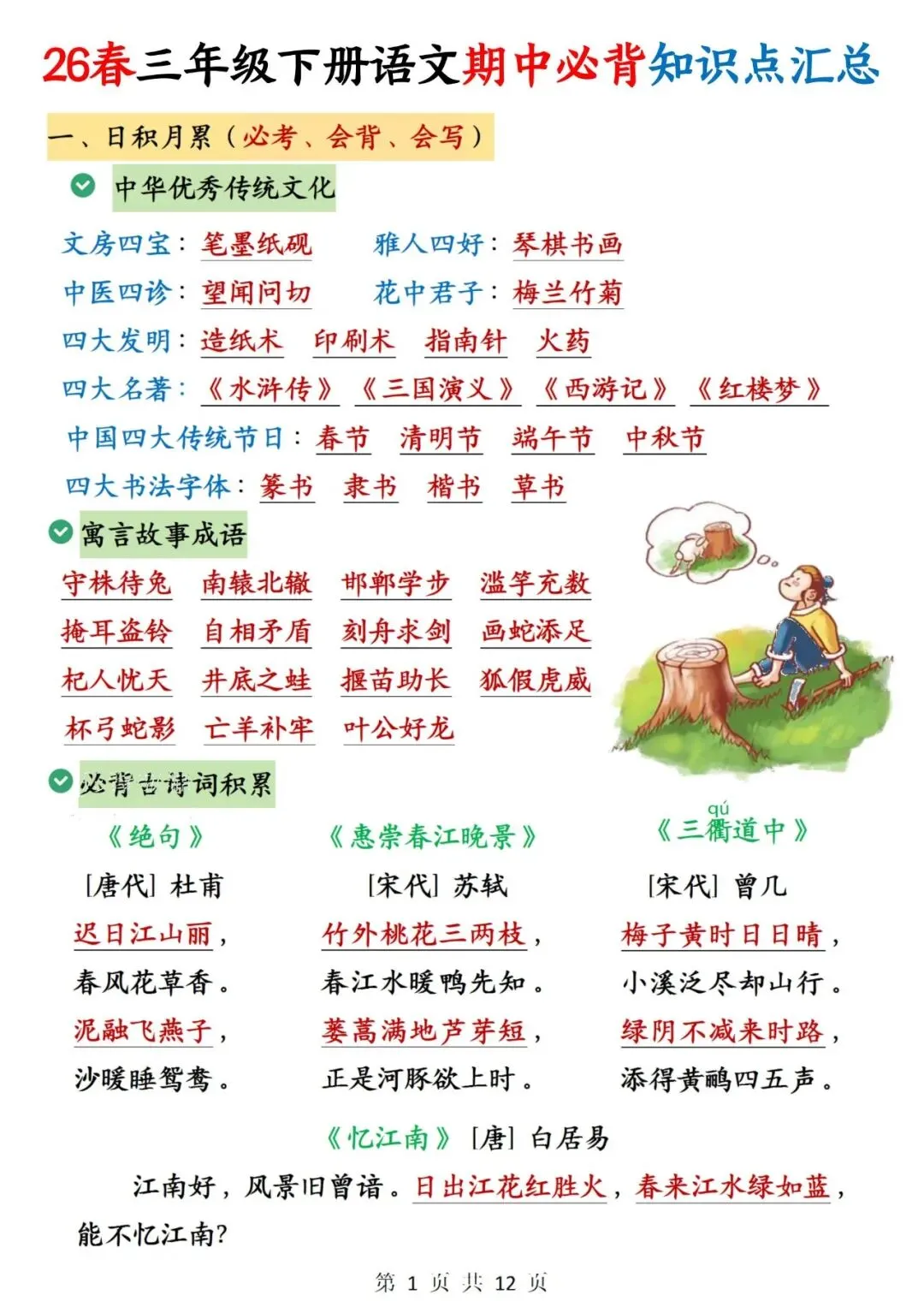三年级下册语文期中必背知识点整理12页可打印电子版
