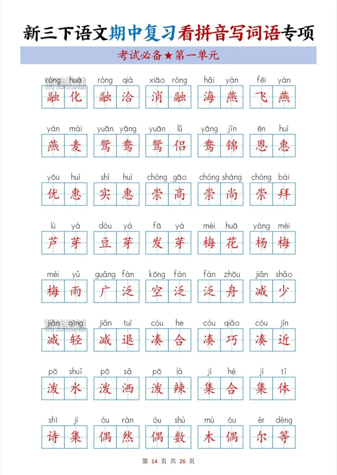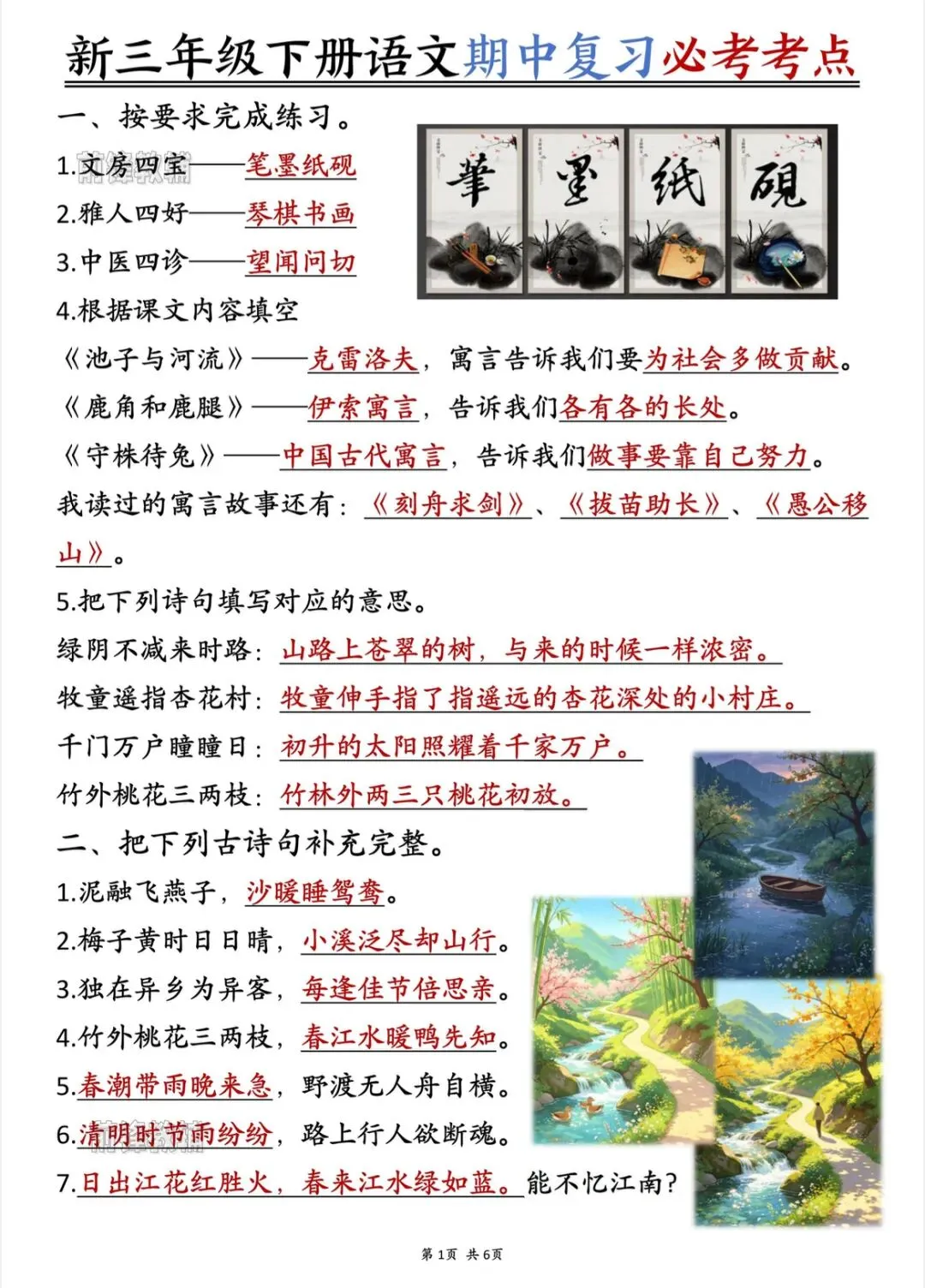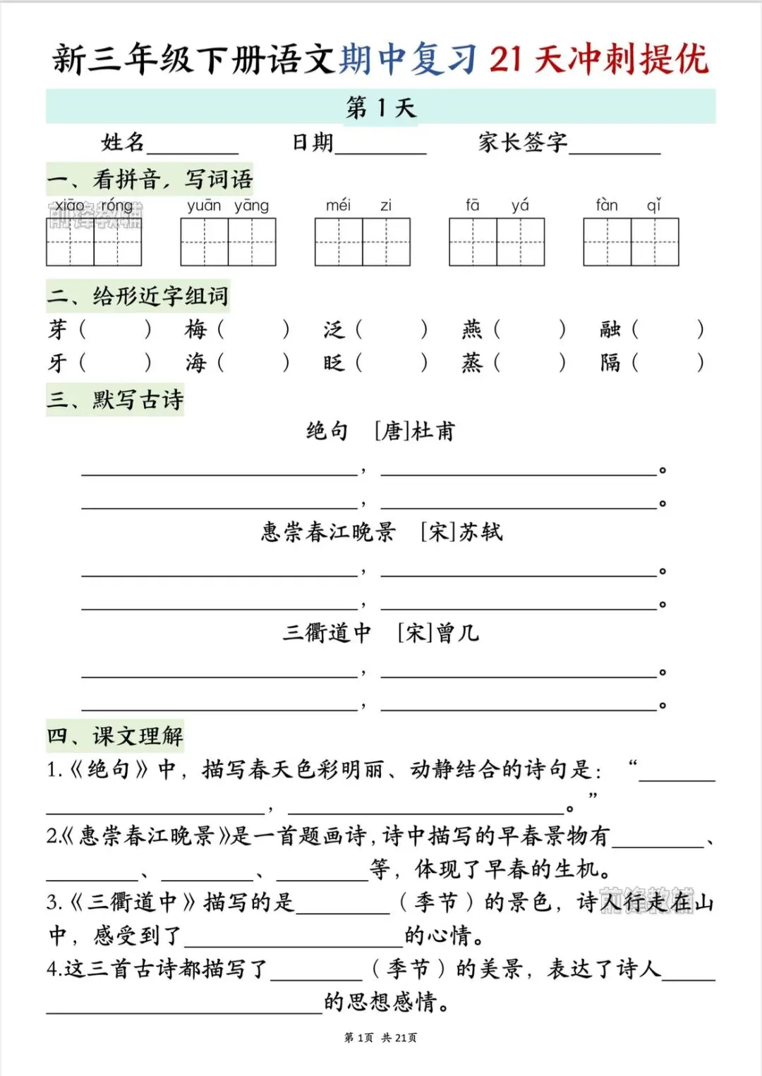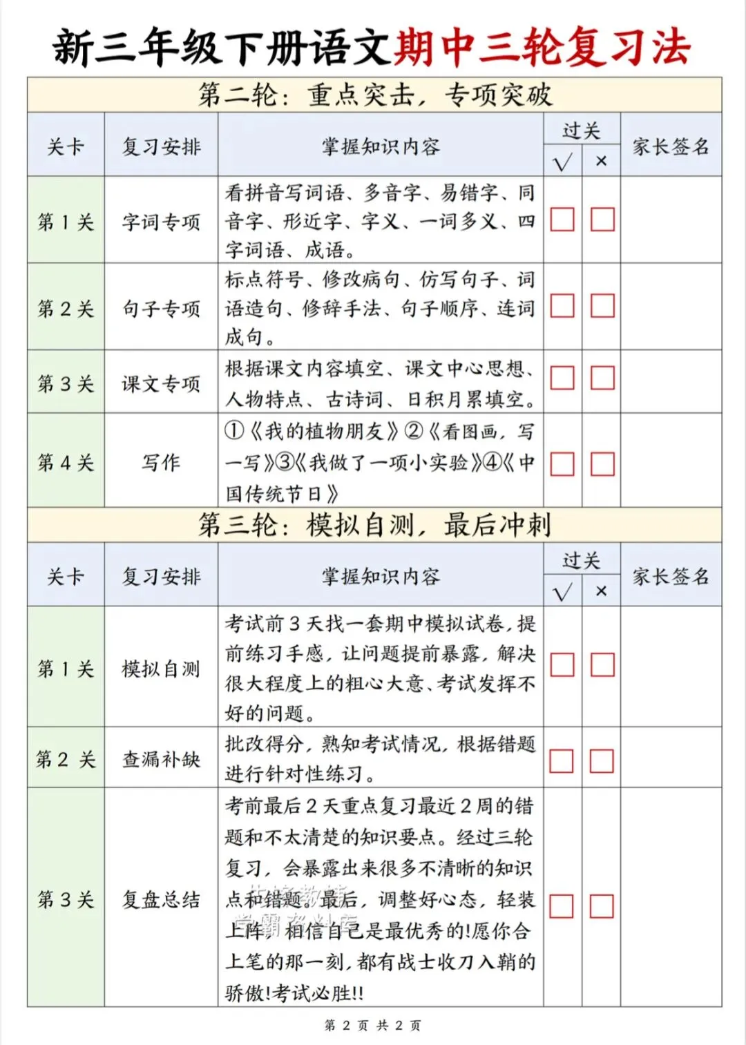 新三年级下册语文期中三轮复习法(有电子版可打印)