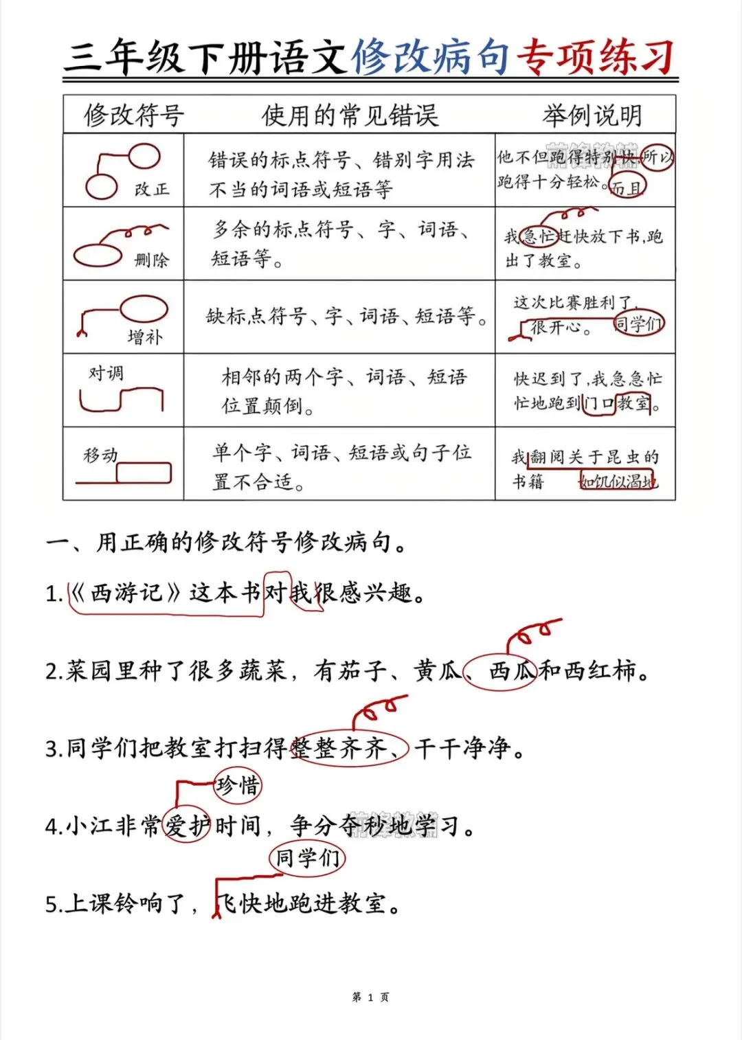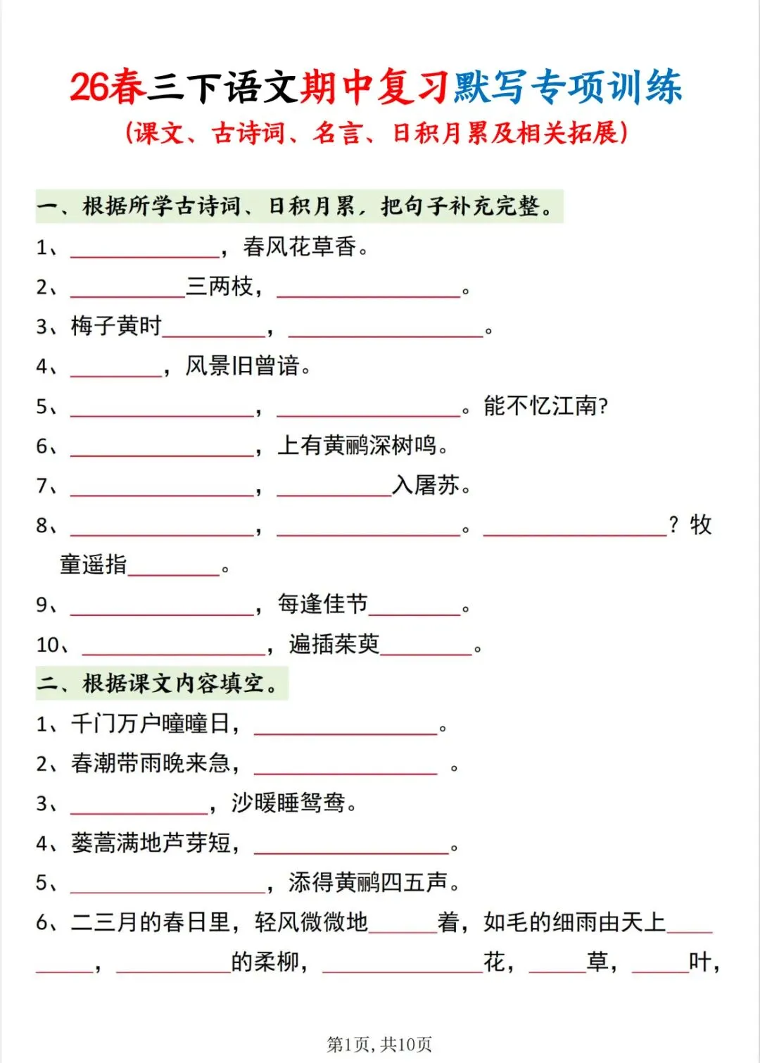 ✅ 5大专项练习:字词、病句、默写、考点、看拼音写词语