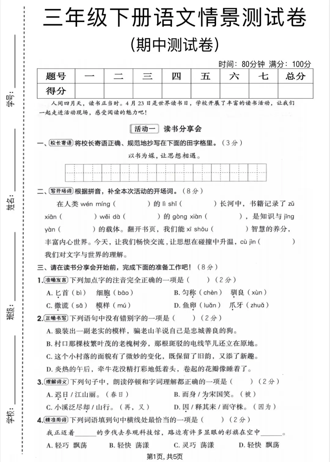 ✅ 情景测试卷+21天提优计划:练考结合,稳步提分