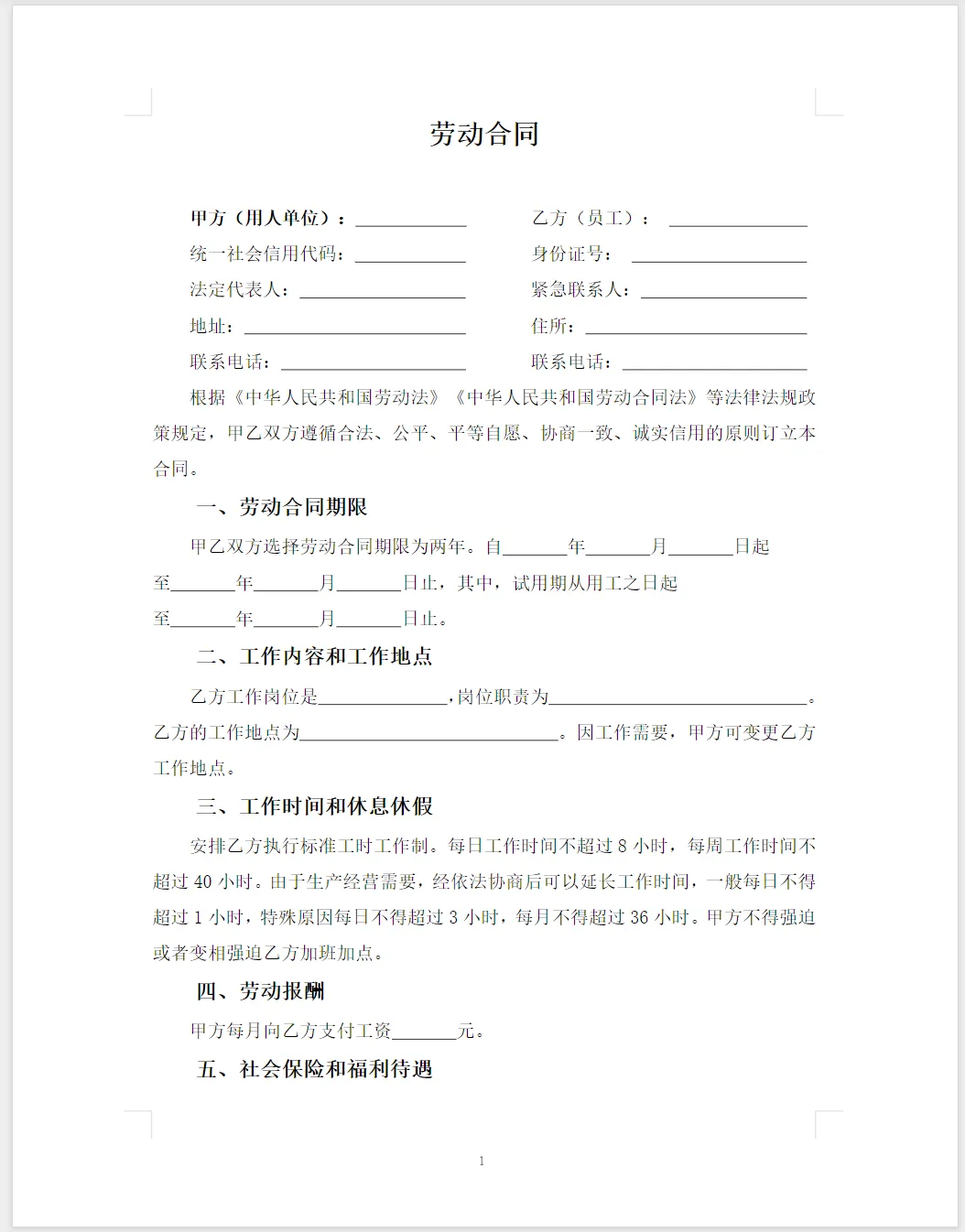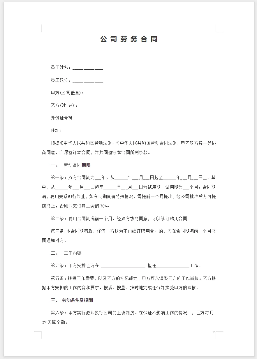 【56套】标准劳务合同模板(word电子版可下载打印)