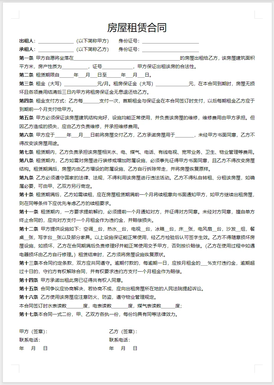 26年新版《房屋租赁合同模板》(电子版可编辑可打印)【免费保存下载】
