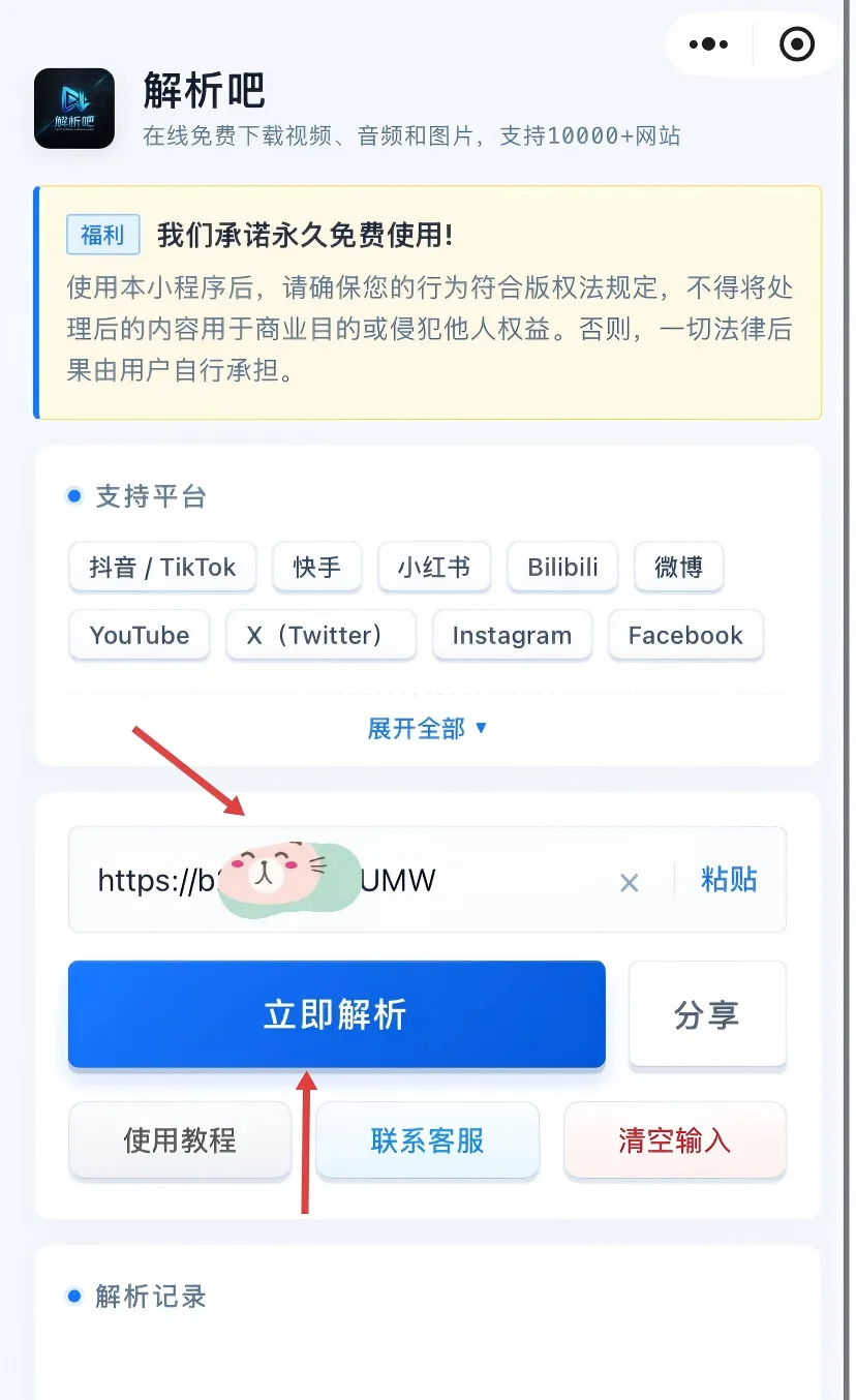 打开#解析吧 小程序,把链接粘进去,点解析